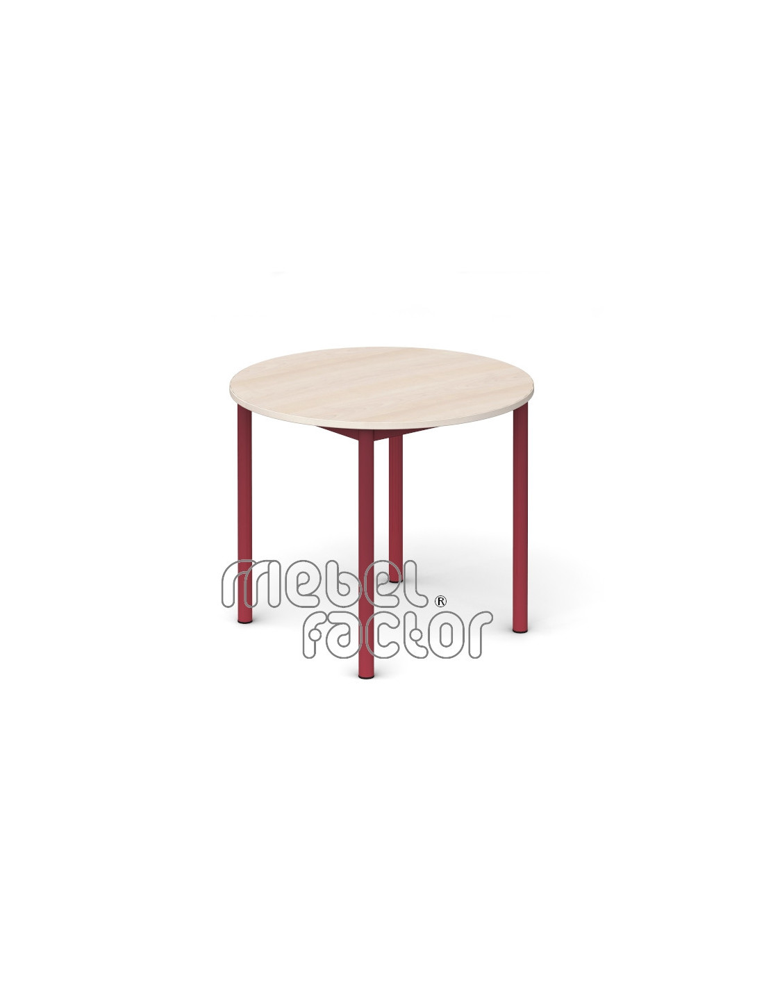 Трапезна модулна маса РОНДО, кръгла. Плот с диаметър 80см/Н71см, кант 2,0мм. Декори на ламинирано ПДЧ от фирмения картел. Заварена конструкция с крака от тръба 40мм. Царги от правоъгълен профил 40х20мм. Полимерно, прахово покритие в цветове по RAL. Произведено в България.