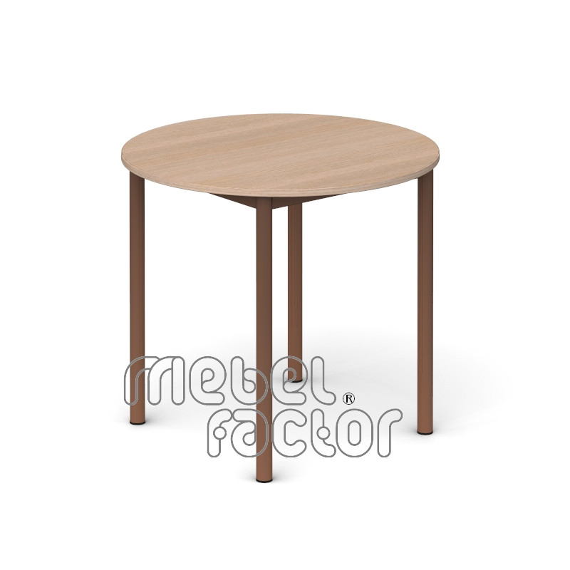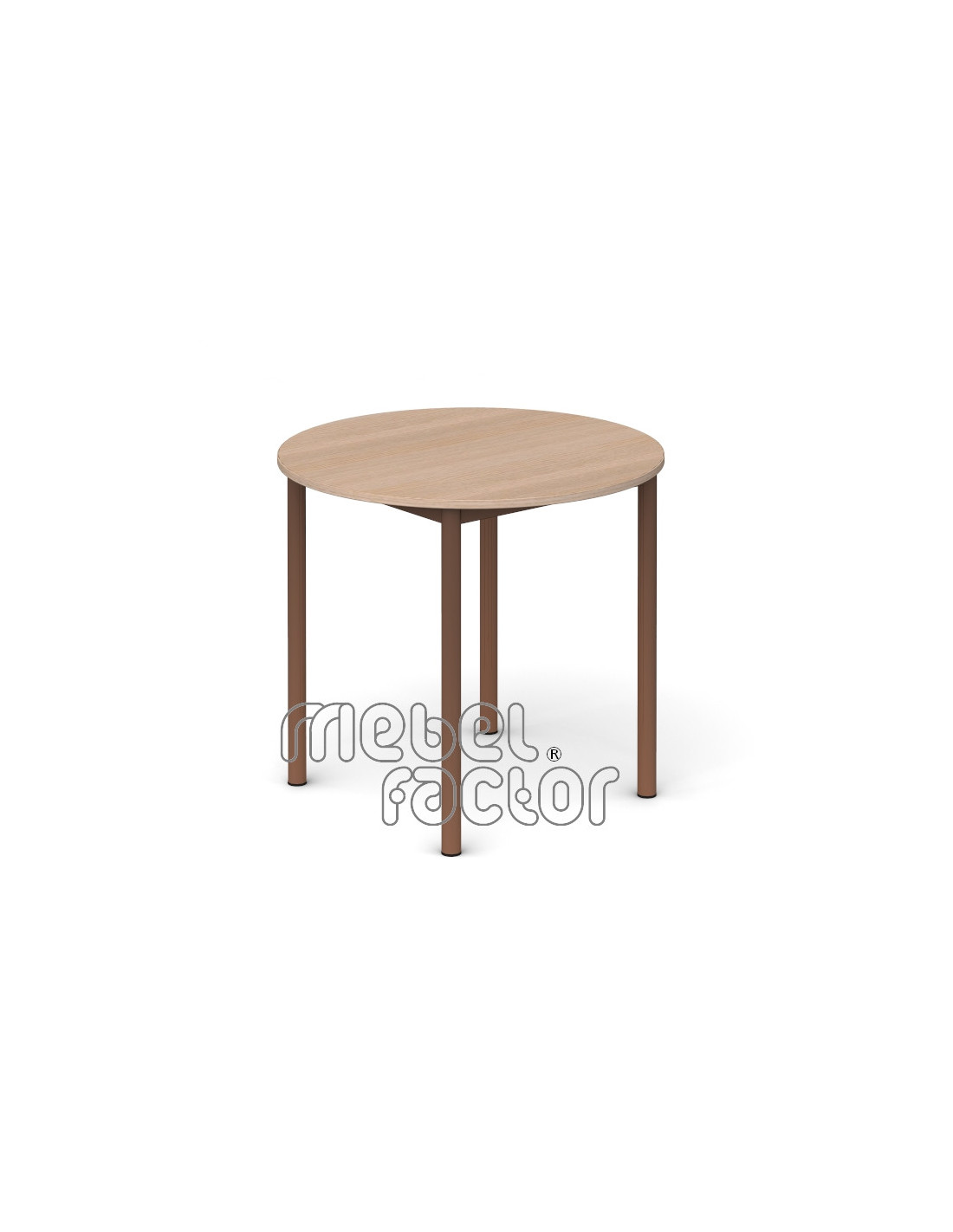 Трапезна модулна маса РОНДО, кръгла. Плот с диаметър 80см/Н76см, кант 2,0мм. Декори на ламинирано ПДЧ от фирмения картел. Заварена конструкция с крака от тръба 40мм. Царги от правоъгълен профил 40х20мм. Полимерно, прахово покритие в цветове по RAL. Произведено в България.