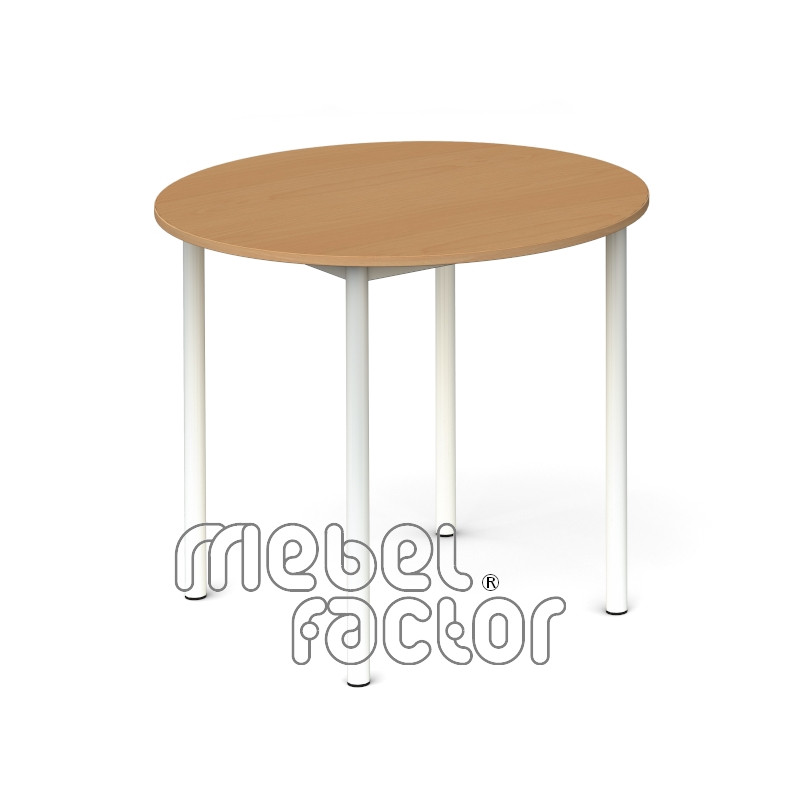Трапезна модулна маса РОНДО, кръгла. Плот с диаметър 90см/Н76см, кант 2,0мм. Декори на ламинирано ПДЧ от фирмения картел. Заварена конструкция с крака от тръба 40мм. Царги от правоъгълен профил 40х20мм. Полимерно, прахово покритие в цветове по RAL. Произведено в България.