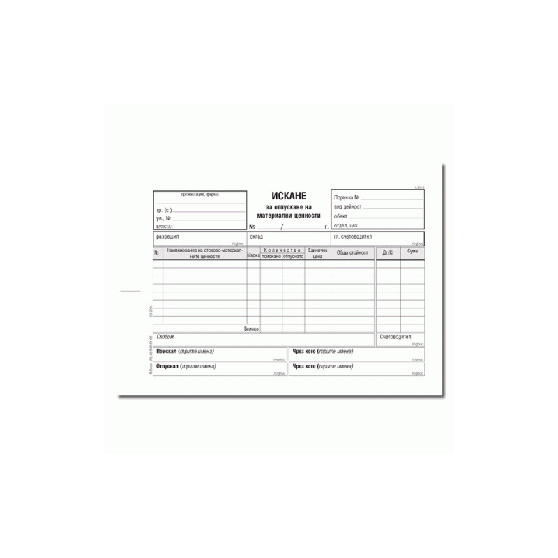 Искане за отпускане на материални ценности 191116