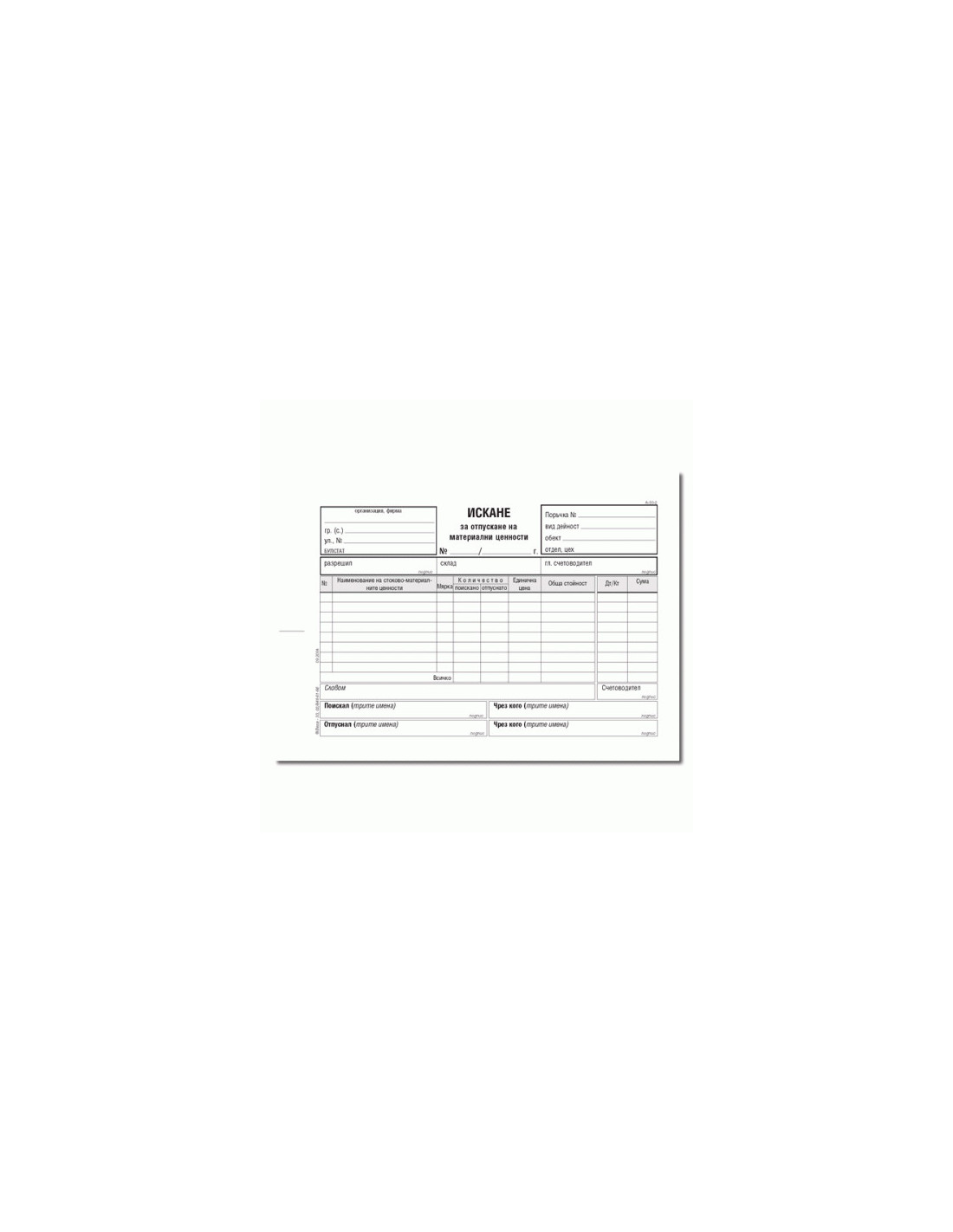 Искане за отпускане на материални ценности, химизирано 191045