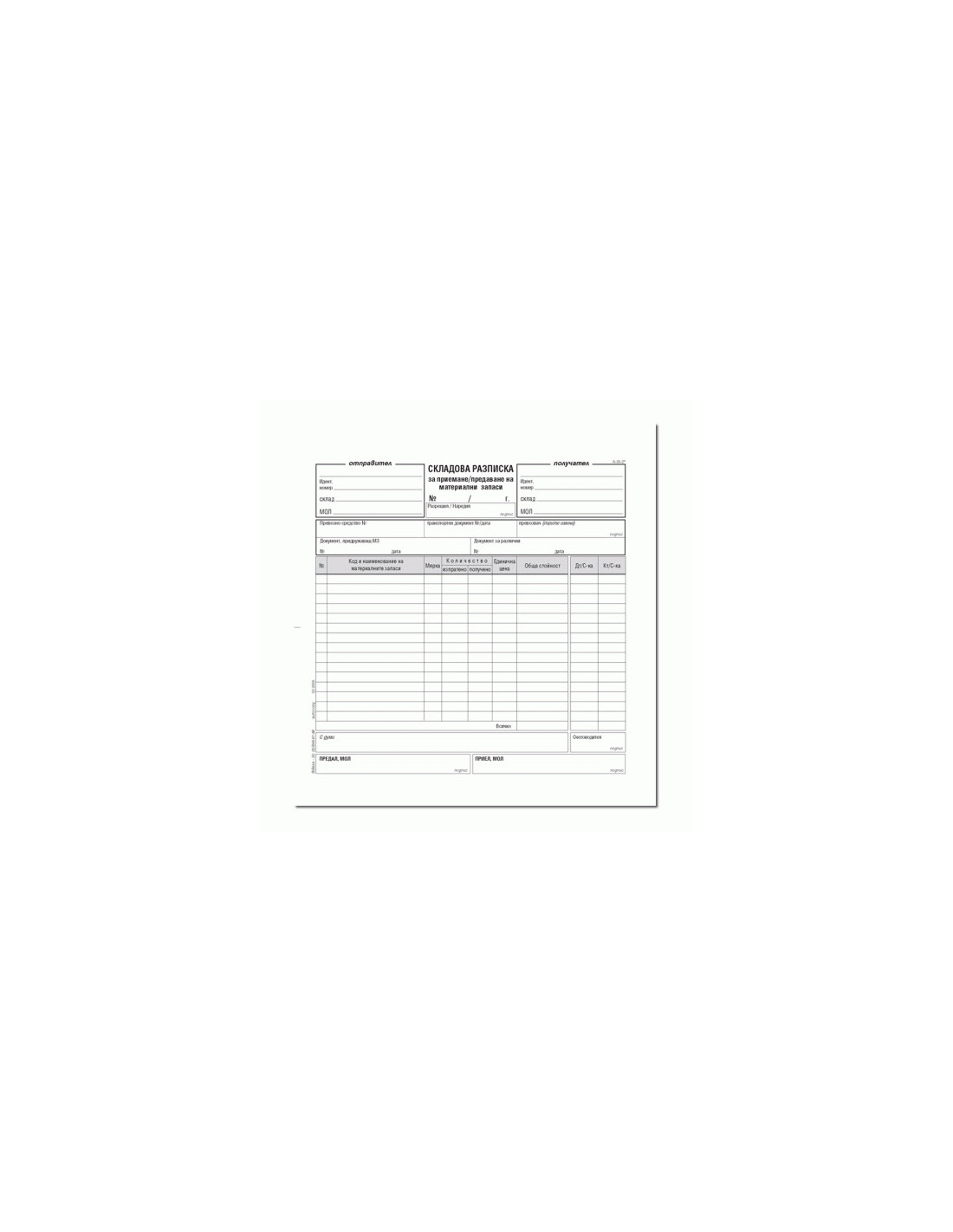 Складова разписка, 15 реда, химизирана 191828