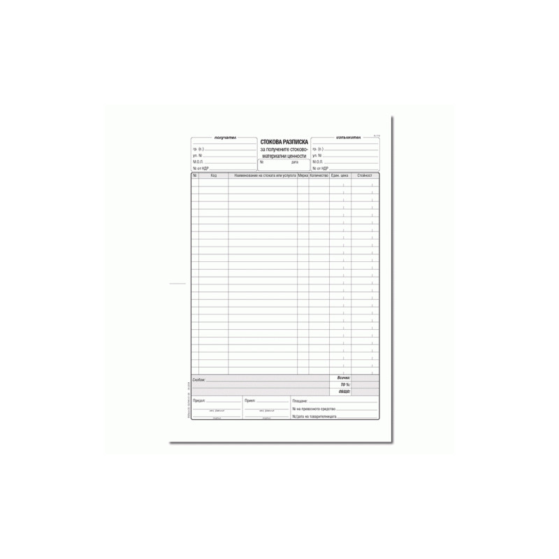 Стокова разписка - 26 реда, химизирана 191494