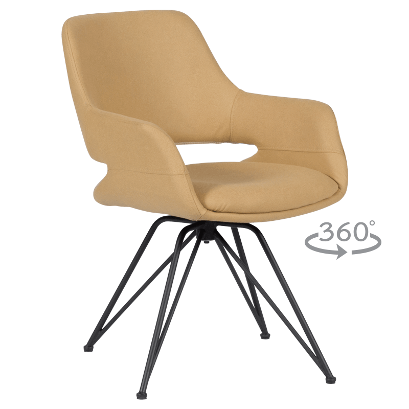 DEVON е трапезен стол с модерен дизайн, нестандартни крака и функция за въртене на седалката на 360°. Изработен е от висококачествена дамаска и крака от праховобоядисан метал. Пълна информация за размерите и характеристиките на модела ще намерите в таблицата в таб/поле "Техническа информация".