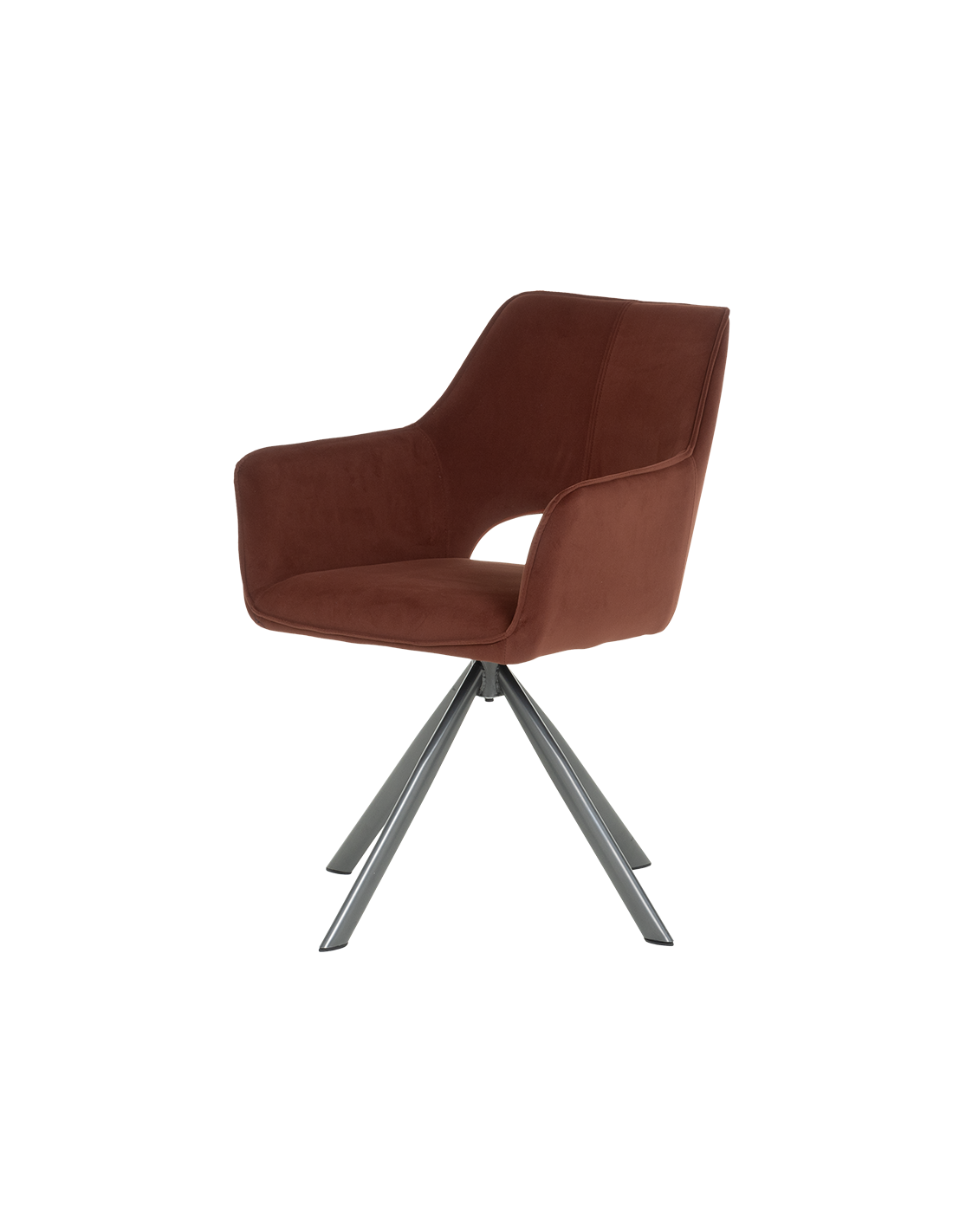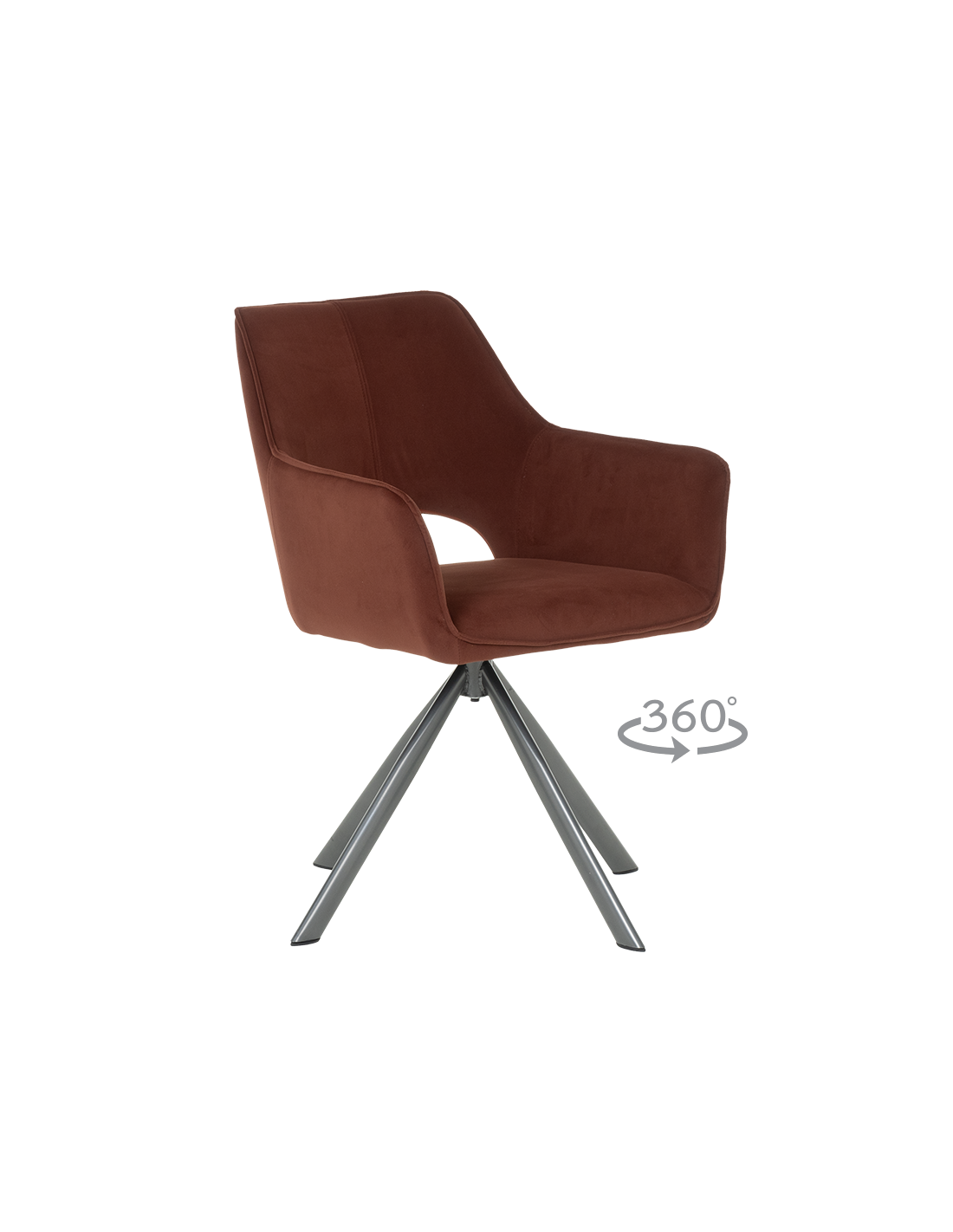 Трапезен стол READING има удобни подлакътници, широка облегалка и комфортна седалка, изработени от висококачествена дамаска. Нестандартната му основа е от праховобоядисан метал. Моделът разполага и с много практична функция за въртене на седалката на 360°. Пълна информация за размерите и характеристиките на модела ще намерите в таблицата в таб/поле "Техническа информация".