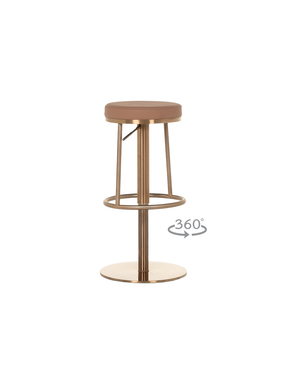 Бар столът BEZU е символ на лукс и изтънченост, съчетавайки модерен дизайн с максимален комфорт. Тапициран във висококачествена еко кожа, той предлага изключителна мекота и стил, придавайки на интериора усещане за елегантност и грижа към детайла. Основата е изработена от иноксова стомана с луксозно полирано покритие със златист финиш, което придава на стола не само издръжливост, но и бляскаво визуално присъствие. Освен впечатляващия си външен вид, BEZU предлага практичност, като в най-ниската си позиция той може да се използва като удобна табуретка. С въртене на 360 градуса и регулируема височина, този стол е перфектният избор за всеки изискан интериор, където стилът и функционалността се преплитат. Пълна информация за размерите и характеристиките на модела ще намерите в таблицата в таб/поле "Техническа информация".