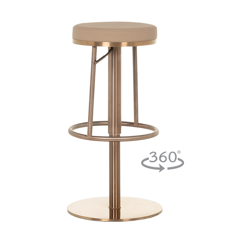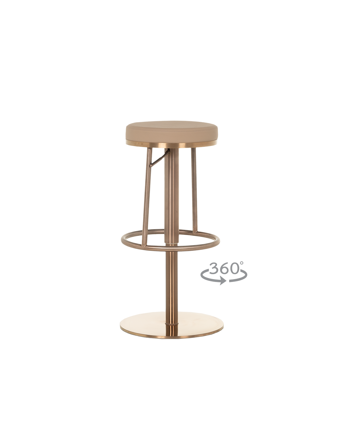 Бар столът BEZU е символ на лукс и изтънченост, съчетавайки модерен дизайн с максимален комфорт. Тапициран във висококачествена еко кожа, той предлага изключителна мекота и стил, придавайки на интериора усещане за елегантност и грижа към детайла. Основата е изработена от иноксова стомана с луксозно полирано покритие със златист финиш, което придава на стола не само издръжливост, но и бляскаво визуално присъствие. Освен впечатляващия си външен вид, BEZU предлага практичност, като в най-ниската си позиция той може да се използва като удобна табуретка. С въртене на 360 градуса и регулируема височина, този стол е перфектният избор за всеки изискан интериор, където стилът и функционалността се преплитат. Пълна информация за размерите и характеристиките на модела ще намерите в таблицата в таб/поле "Техническа информация".