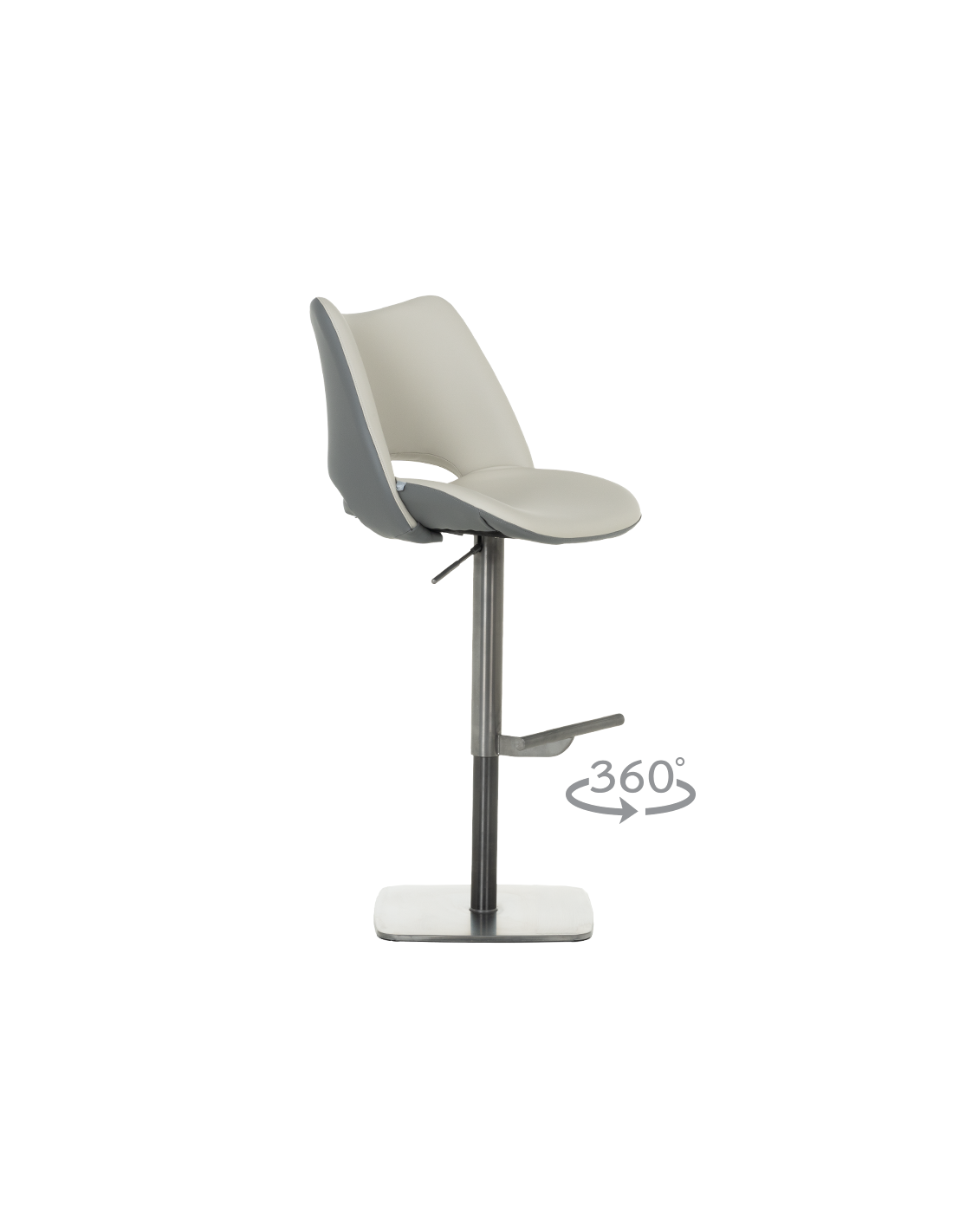 Бар стол MARIRA 2 впечатлява с изчистен и модерен дизайн, който съчетава функционалност и стил. Светлосивата еко кожа придава изтънченост и съвременно излъчване, подходящо за всяко жилищно или търговско пространство. Основата от полирана неръждаема стомана гарантира дълготрайност и стабилност, а удобната 360-градусова ротация улеснява ползването му в различни ситуации. Столът разполага с регулируема височина чрез газов амортисьор и издържа натоварване до 120 килограма, което го прави подходящ за ежедневна употреба. Пълна информация за размерите и характеристиките на модела ще намерите в таблицата в таб/поле "Техническа информация".