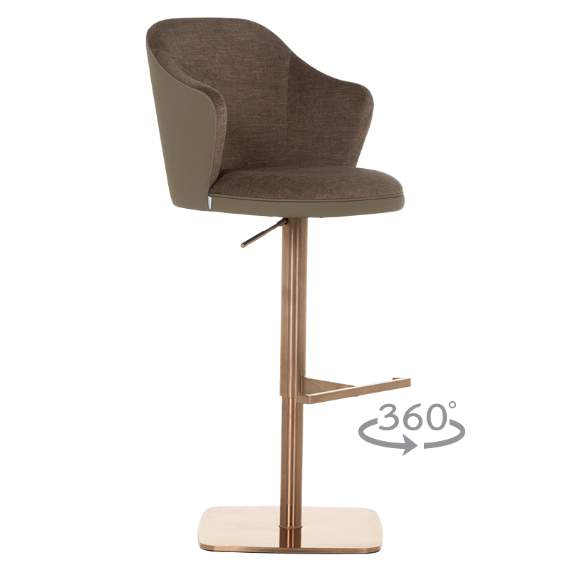 Бар столът BANKET е съвършеното въплъщение на лукс и комфорт, съчетавайки модерен дизайн с функционалност. Тапициран във висококачествена еко кожа, той предоставя несравнима мекота и елегантност, създавайки изискана атмосфера. Основата му е изработена от иноксова стомана с луксозно полирано покритие със златист финиш, което придава както забележителна издръжливост, така и изискан блясък. Подлакътниците се преливат плавно с облегалката, създавайки стилна извивка, която подчертава хармоничния и елегантен силует на стола. С въртене на 360 градуса и регулируема височина, BANKET предлага както функционалност, така и изтънчен визуален акцент за всеки интериор, където комфортът и стилът се преплитат в съвършена хармония. Пълна информация за размерите и характеристиките на модела ще намерите в таблицата в таб/поле "Техническа информация".