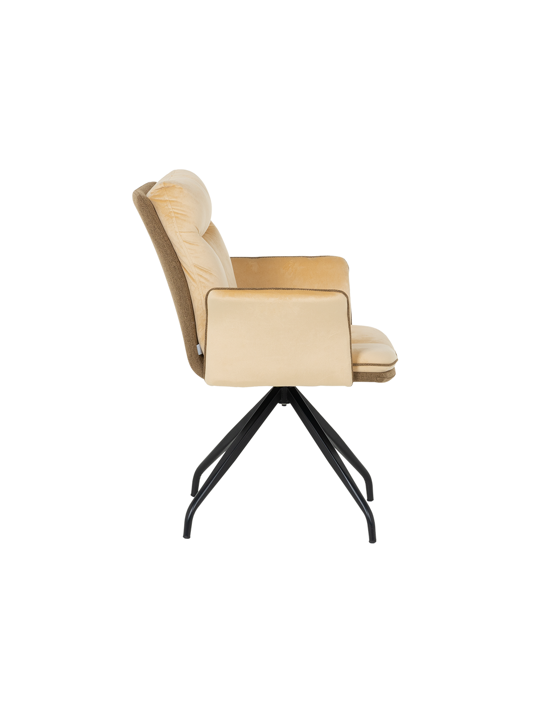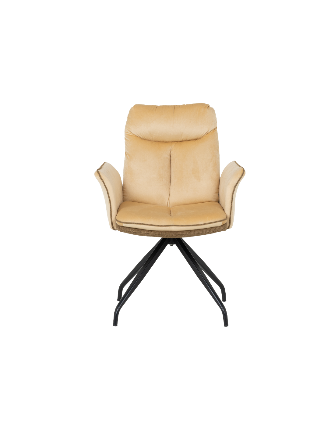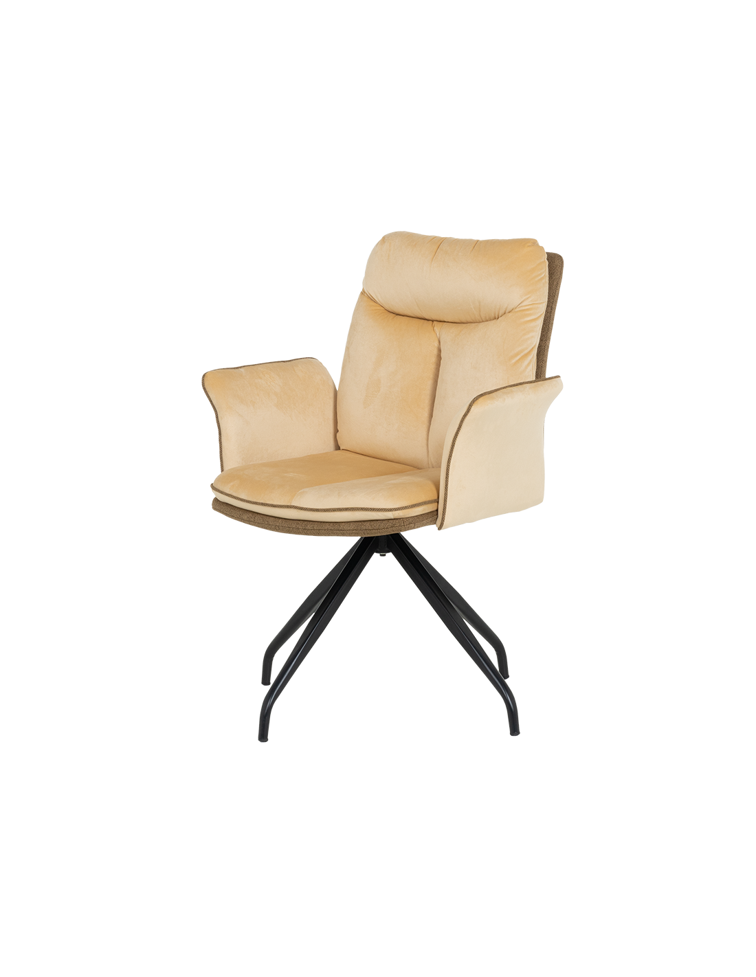 MARLOW 1 е трапезен стол с модерна визия. Той разполага с широки седалка и облегалка, тапицирани в мека дамаска, допълнени с възглавници за максимален комфорт. Подлакътниците повишават удобството на седящия. Основата е изработена от метал в елегантен кремав цвят и предлага иновативна функция за 360° въртене. Пълна информация за размерите и характеристиките на модела ще намерите в таблицата в таб/поле "Техническа информация".