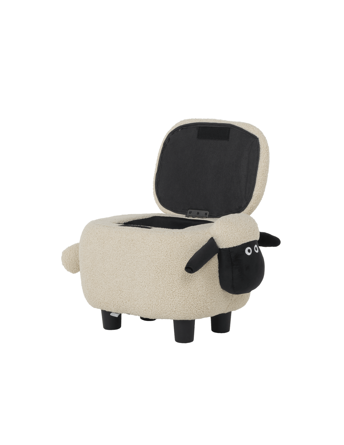 Детската табуретка с форма на овца е страхотно допълнение към стаята на вашето малко съкровище. Тя е способна да омагьоса сърцата на малки и големи със своите мили очи и мека, пухкава дамаска, а скритата ракла във вътрешността ѝ е идеалното скривалище за любимите играчки на вашето дете. Пълна информация за размерите и характеристиките на модела ще намерите в таблицата в таб/поле "Техническа информация".