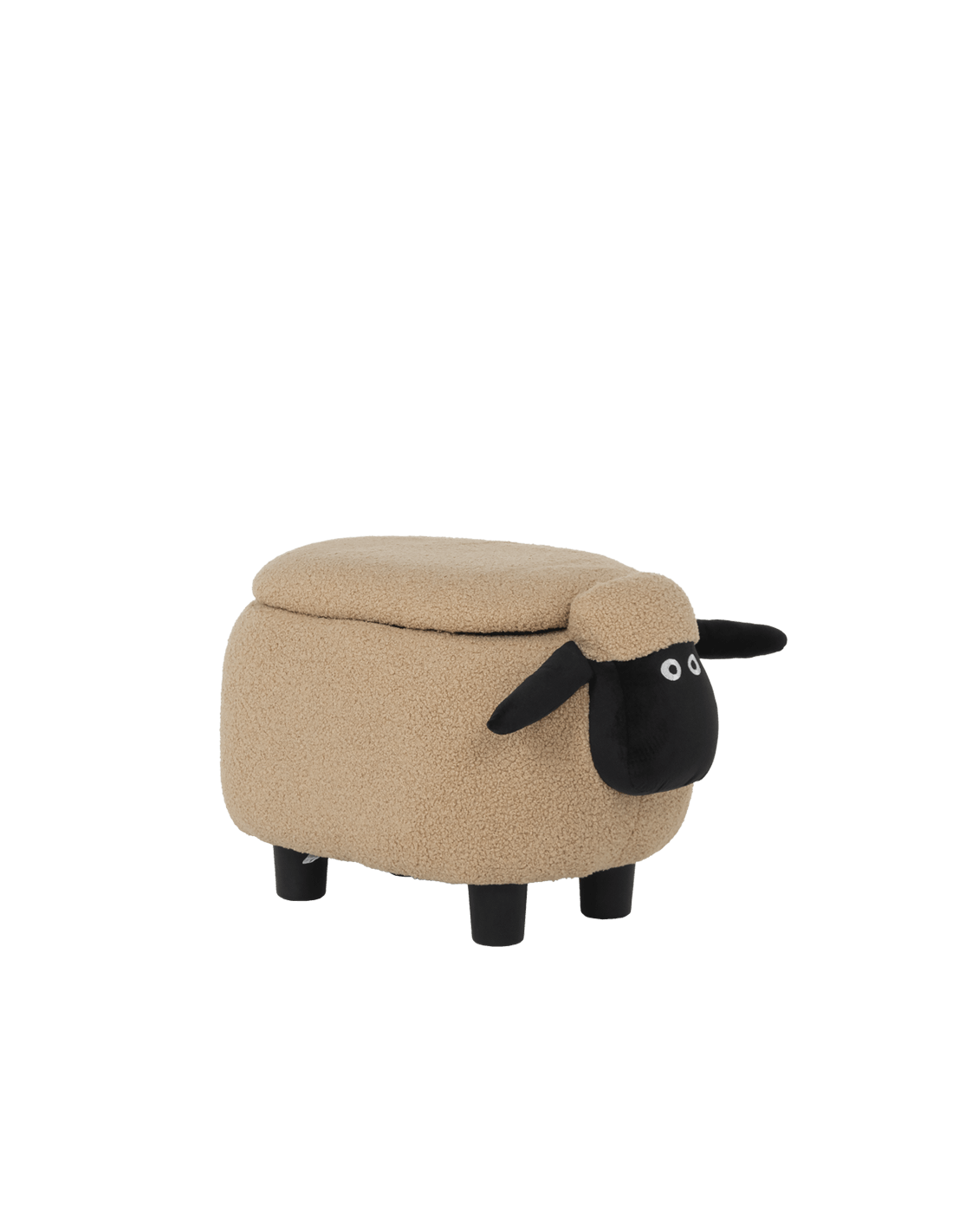 Детската табуретка с форма на овца е страхотно допълнение към стаята на вашето малко съкровище. Тя е способна да омагьоса сърцата на малки и големи със своите мили очи и мека, пухкава дамаска, а скритата ракла във вътрешността ѝ е идеалното скривалище за любимите играчки на вашето дете. Пълна информация за размерите и характеристиките на модела ще намерите в таблицата в таб/поле "Техническа информация".