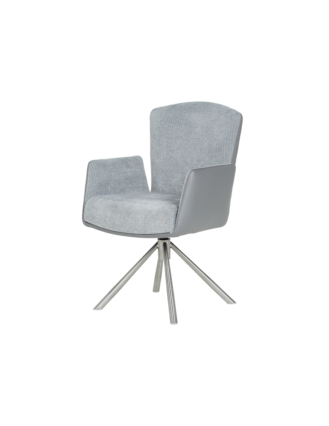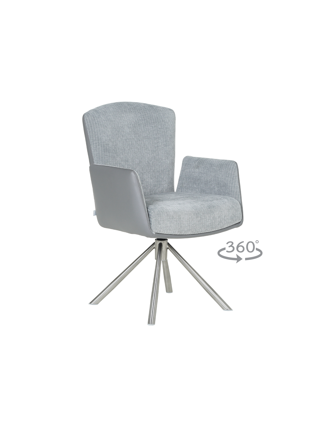 Трапезният стол SINDI впечатлява с модерен дизайн и функционалност, създавайки идеалния баланс между комфорт и стил. Тапицираната седалка с висококачествена дамаска и покет пружини осигурява максимален комфорт, а удобните подлакътници добавят усещане за уют. Една от ключовите функции на SINDI е релакс облегалката с възможност за накланяне назад, която предоставя допълнително удобство и релаксация. Масивната основа от неръждаема стомана придава стабилност и елегантен външен вид. Столът е здрав и издържа до 120 кг, което го прави дълготраен и надежден избор за всяка съвременна трапезария, където се цени както комфортът, така и изтънченият дизайн. Пълна информация за размерите и характеристиките на модела ще намерите в таблицата в таб/поле "Техническа информация".