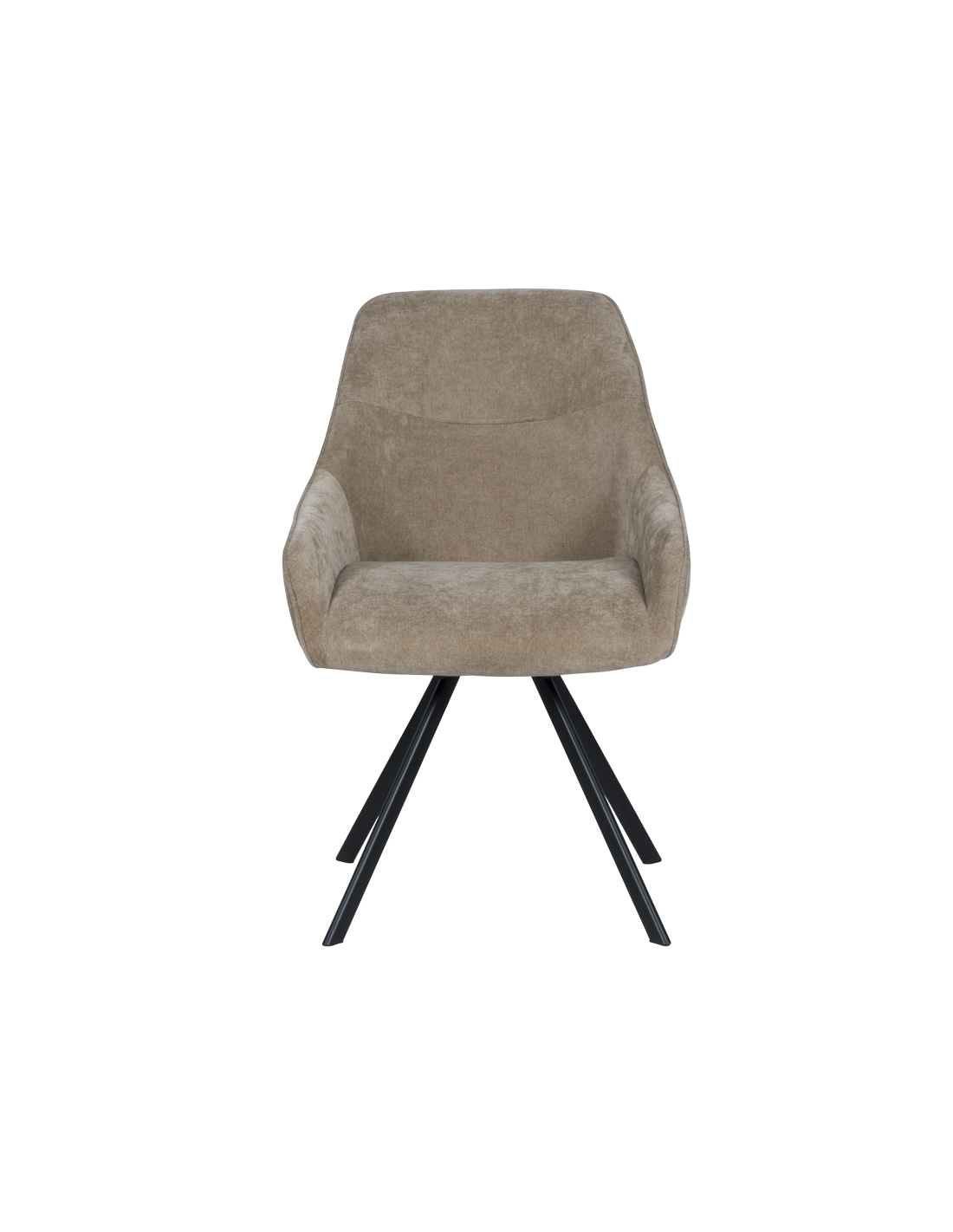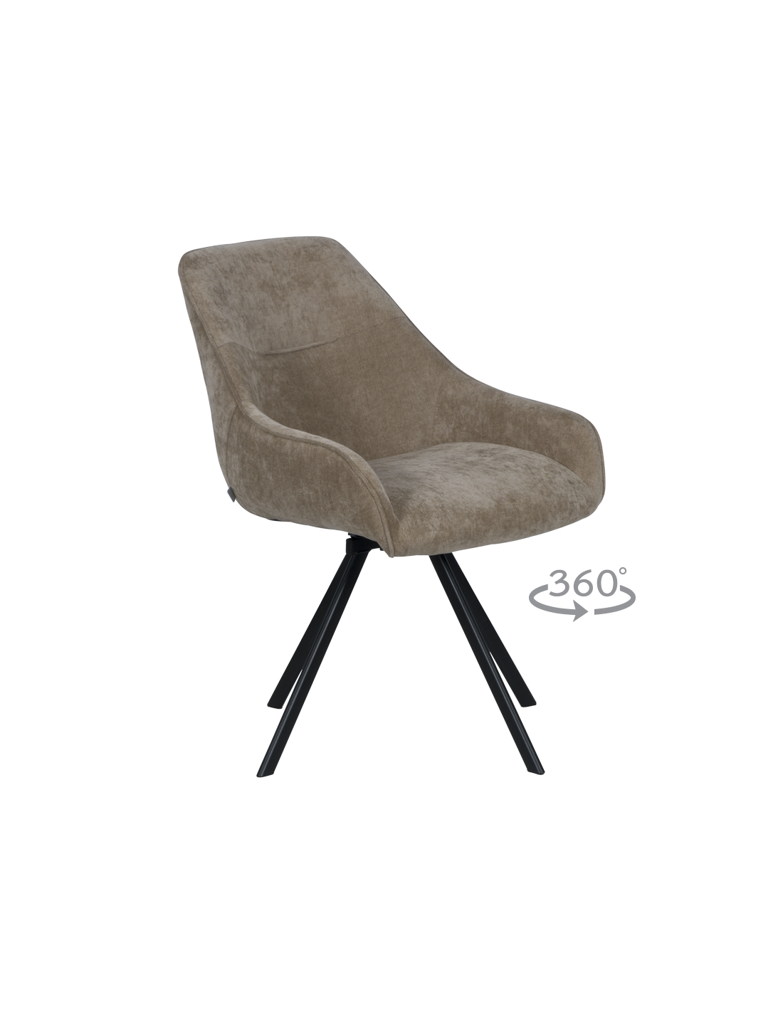 Трапезен стол MARSALA – бежов съчетава елегантност и комфорт с модерни функционалности. Тапициран е с мека дамаска, а краката са от прахово боядисан метал. Столът разполага с подлакътници и функция за въртене на 360°, което добавя допълнително удобство при сядане. Максималното натоварване е до 120 кг, което прави стол MARSALA здрав и надежден избор за трапезарията. Пълна информация за размерите и характеристиките на модела ще намерите в таблицата в таб/поле „Техническа информация“.