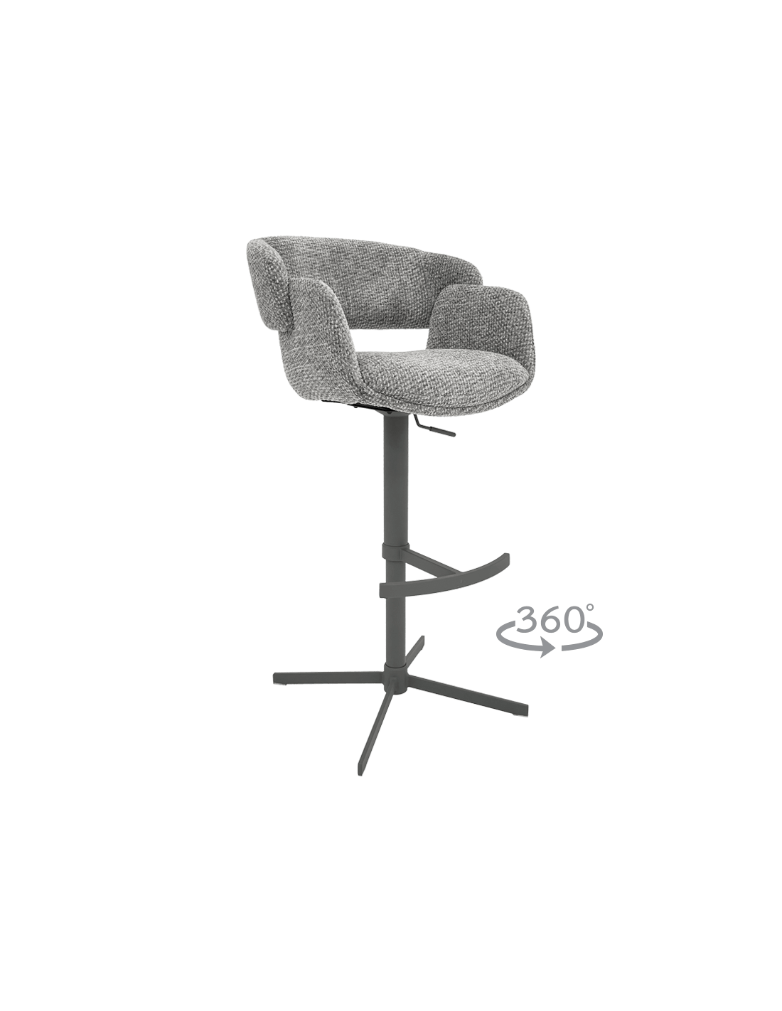 Бар стол PAIDE 8 впечатлява с модерната си визия и усещане за уют, превръщайки всяко пространство в стилно и практично място за релакс. Меката дамаска и покет пружините осигуряват комфорт при продължително седене, а стабилната основа от праховобоядисан метал в сив цвят гарантира надеждност и устойчивост. Благодарение на 360° въртене, регулируемата височина и удобната поставка за крака, моделът предлага персонализирано удобство за всеки потребител. PAIDE 8 е чудесен избор както за модерни кухни и домашни барове, така и за заведения, кафенета и стилни интериори с индустриален или съвременен характер. Пълна информация за размерите и характеристиките на модела ще намерите в таблицата в таб/поле "Техническа информация".