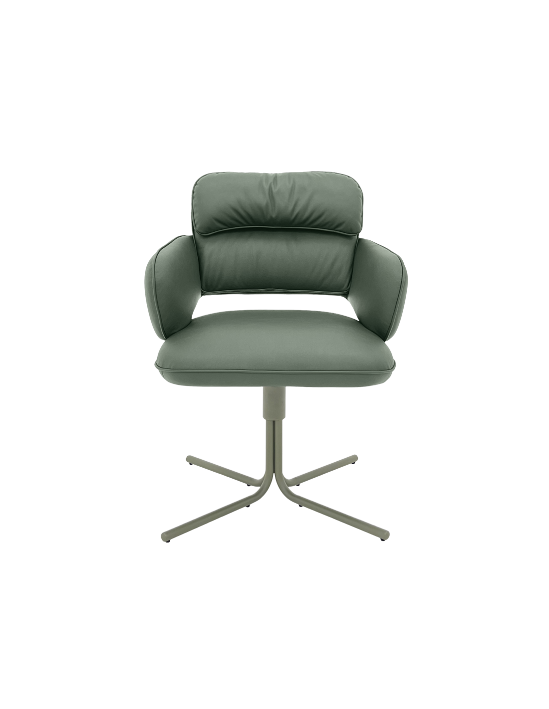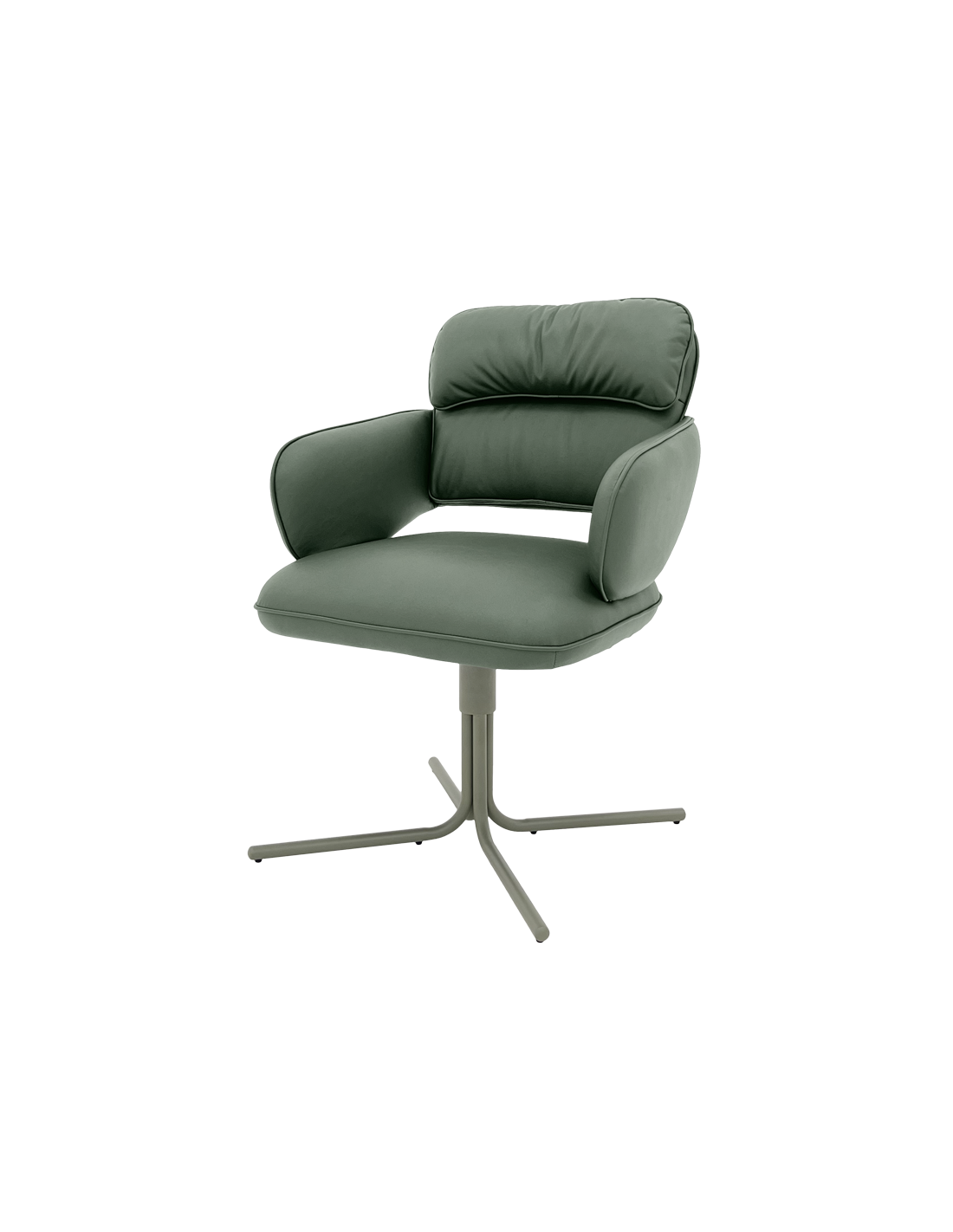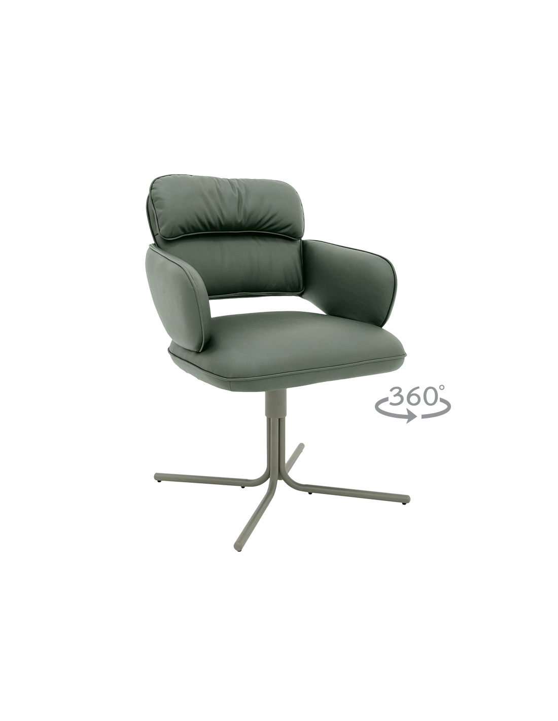 Трапезният стол RAKVERE 9 впечатлява с модерен силует и изтънчен комфорт. Меката дамаска прегръща тялото, а вградените покет пружини осигуряват приятно, пружиниращо усещане при сядане. Люлеещата функция с елегантно автоматично връщане и 360° въртене добавят лекота и свобода на движение. Завършен с фина основа от праховобоядисан метал в зелен мат, моделът носи неподражаемо усещане за стил и съвременна естетика. Пълна информация за размерите и характеристиките на модела ще намерите в таблицата в таб/поле „Техническа информация“.