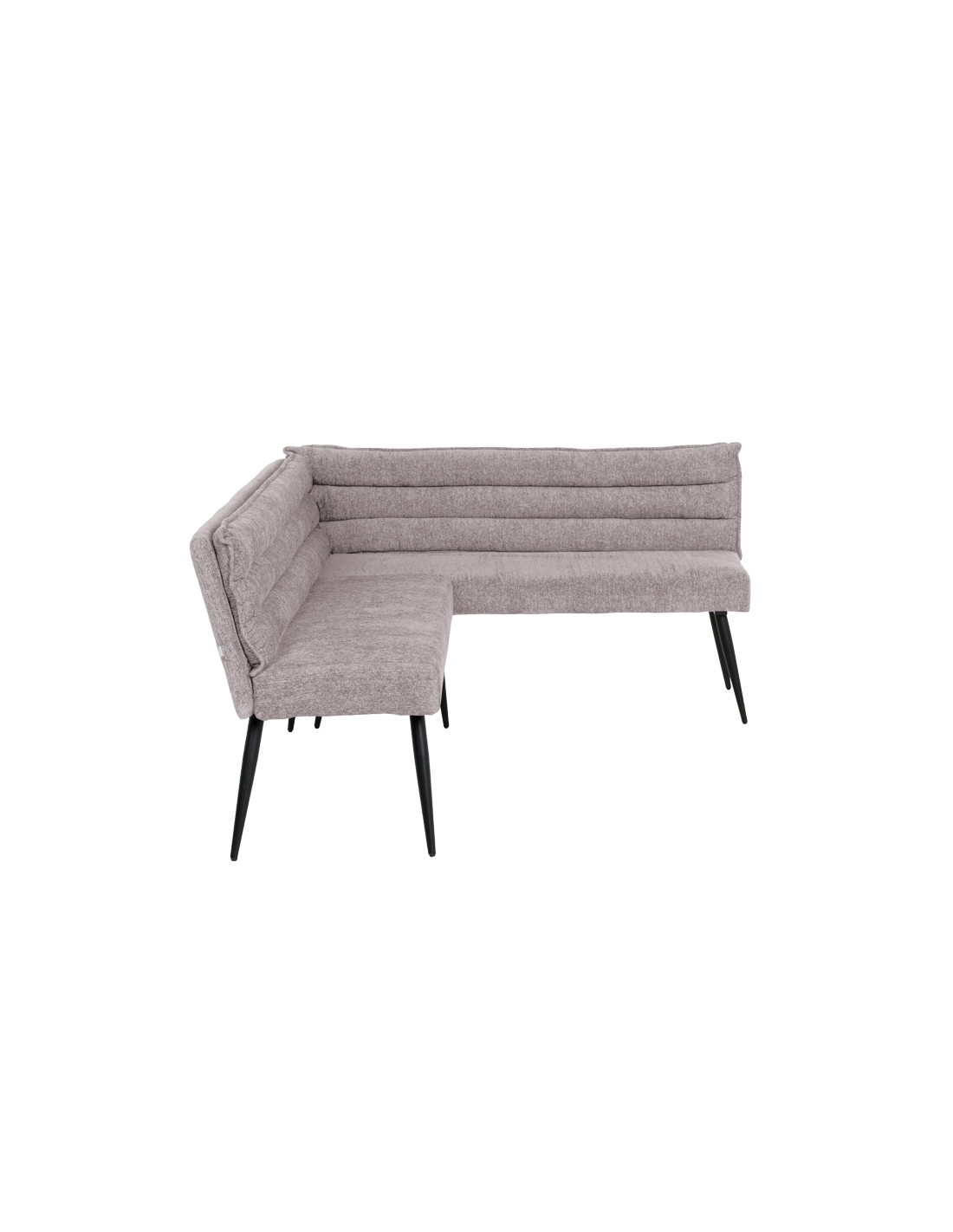 Кухненският ъгъл IKSAN съчетава стил, уют и практичност в едно елегантно решение за трапезарията. Седалката и облегалката са изработени от мека дамаска с пълнеж от полиуретанова пяна и покет пружини, които осигуряват комфорт и стабилна опора при ежедневно ползване. Моделът впечатлява с модерна визия и хоризонтално капитониран дизайн, който допринася за усещане за уют. Здравата основа от праховобоядисан метал в черен цвят гарантира устойчивост и дълготрайност. Пълна информация за размерите и характеристиките на модела ще намерите в таблицата в таб/поле "Техническа информация".