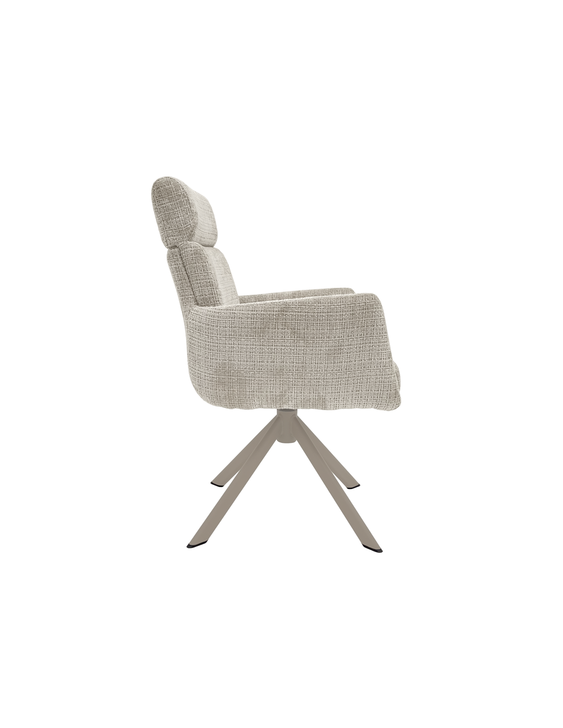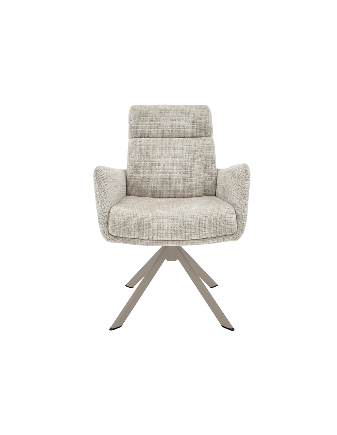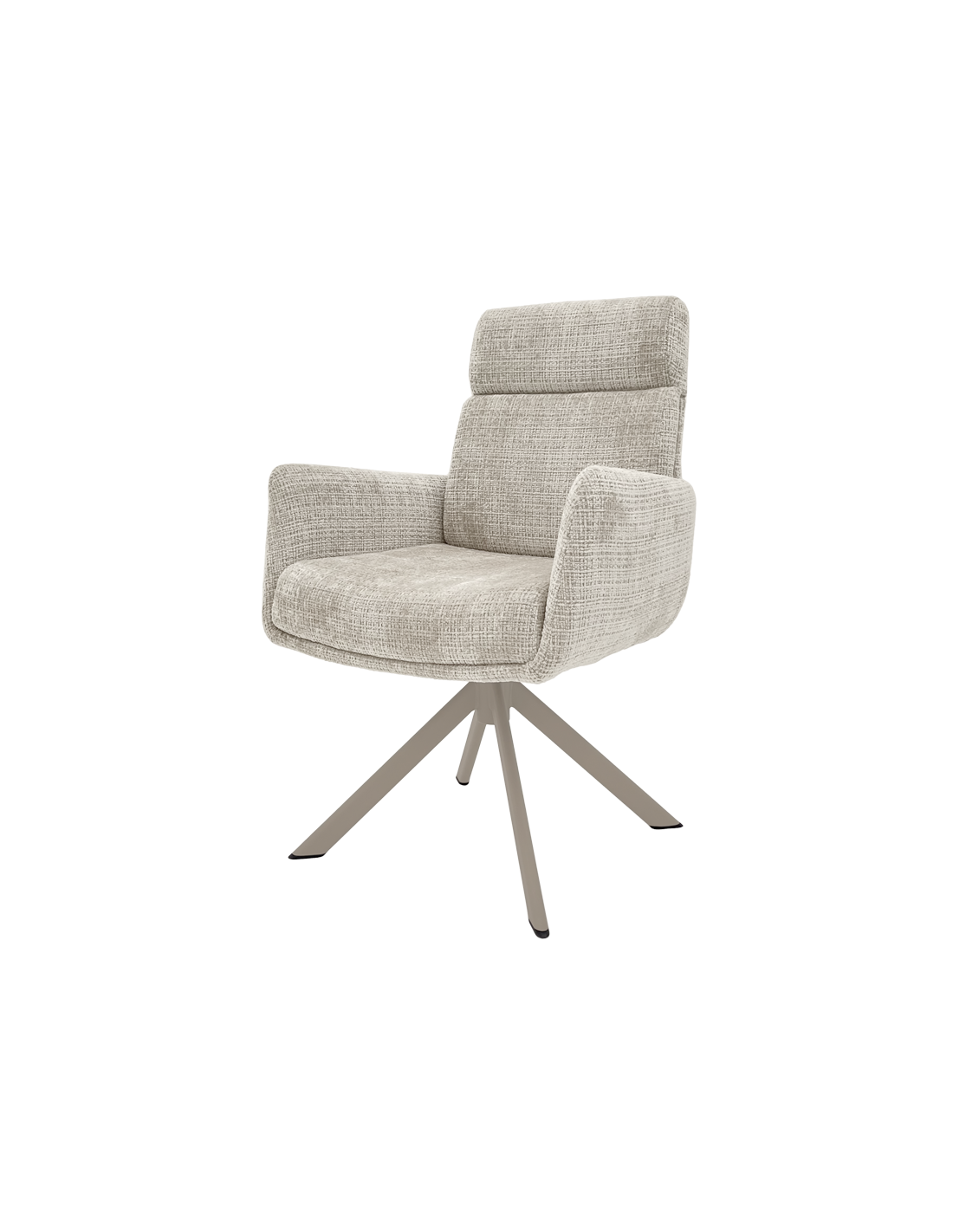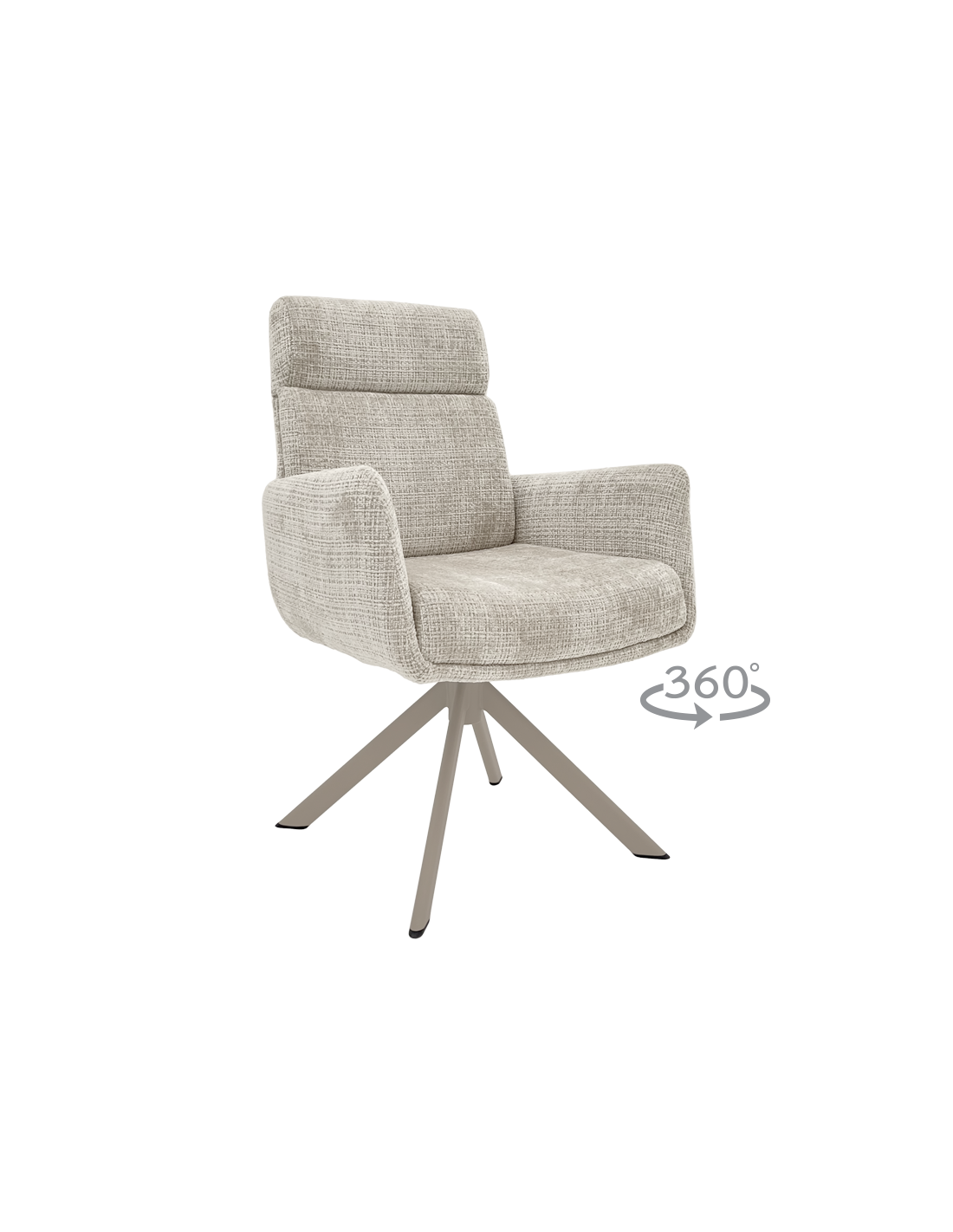 Трапезен стол TORVA е олицетворение на модерния комфорт, предлагайки елегантен дизайн с удобни подлакътници и мека тапицерия от издръжлива дамаска. За максимално удобство при продължително седене, седалката е подсилена със система от покет пружини и разполага с функция за люлеене. Здравата основа от праховобоядисан метал позволява пълно въртене на 360° и включва механизъм за автоматично връщане в изходна позиция. Този стол е създаден да издържи на натоварване до 120 кг, което го прави отличен и стабилен избор за всяка съвременна трапезария. Пълна информация за размерите и характеристиките на модела ще намерите в таблицата в таб/поле "Техническа информация".