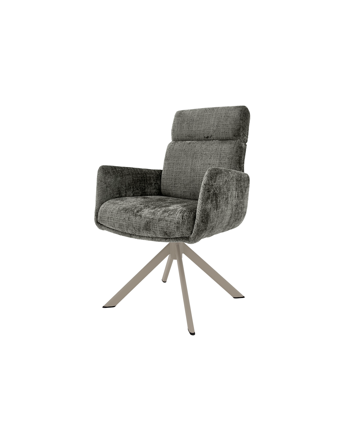 Трапезен стол TORVA е олицетворение на модерния комфорт, предлагайки елегантен дизайн с удобни подлакътници и мека тапицерия от издръжлива дамаска. За максимално удобство при продължително седене, седалката е подсилена със система от покет пружини и разполага с функция за люлеене. Здравата основа от праховобоядисан метал позволява пълно въртене на 360° и включва механизъм за автоматично връщане в изходна позиция. Този стол е създаден да издържи на натоварване до 120 кг, което го прави отличен и стабилен избор за всяка съвременна трапезария. Пълна информация за размерите и характеристиките на модела ще намерите в таблицата в таб/поле "Техническа информация".