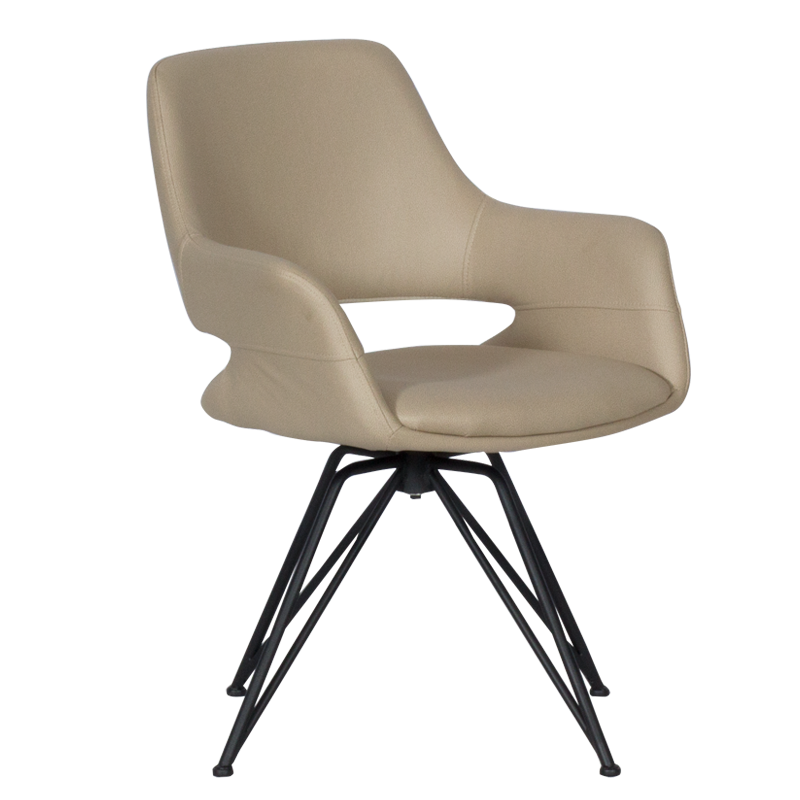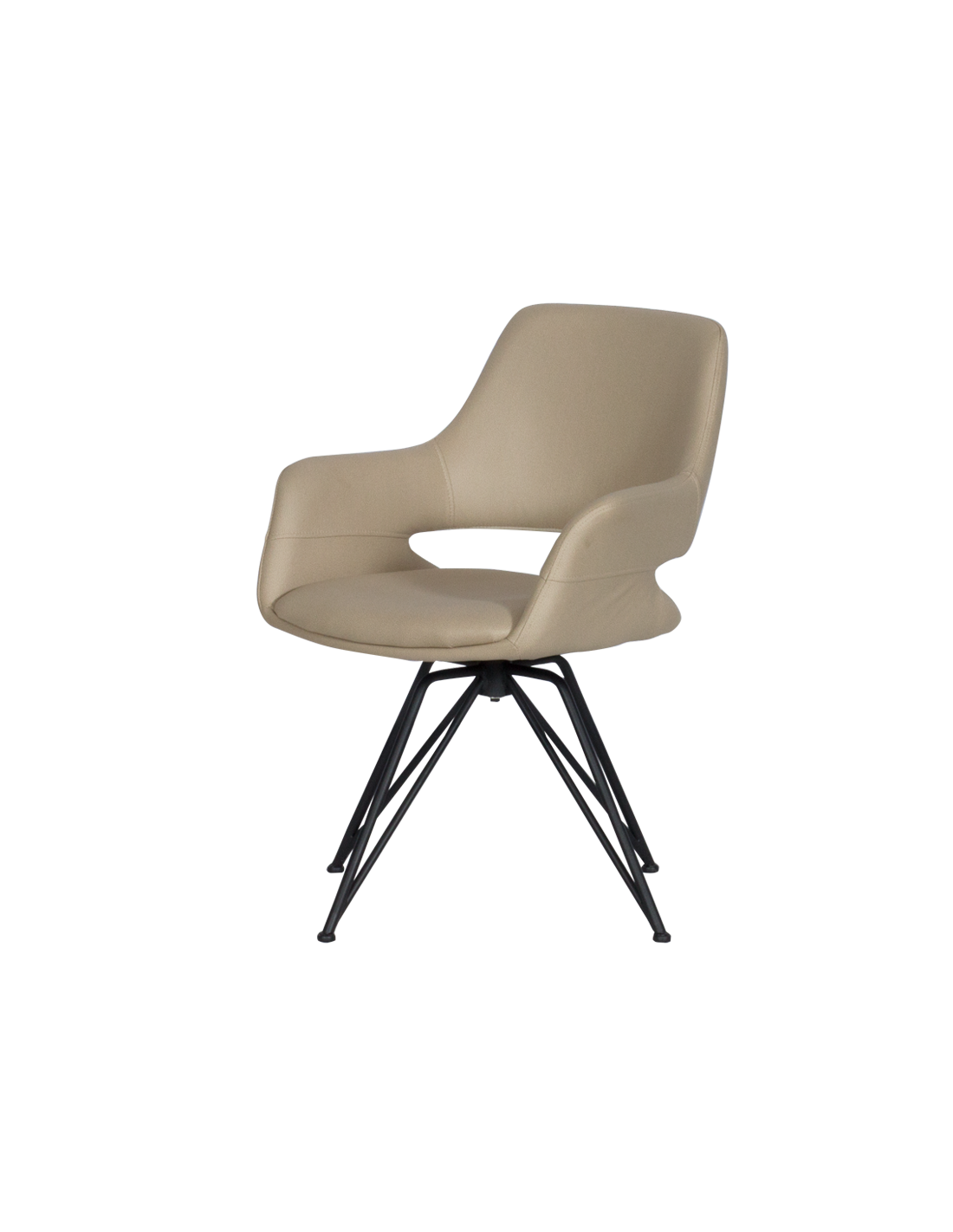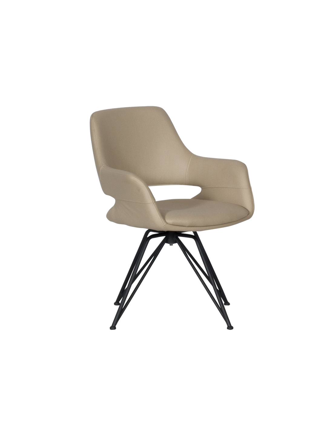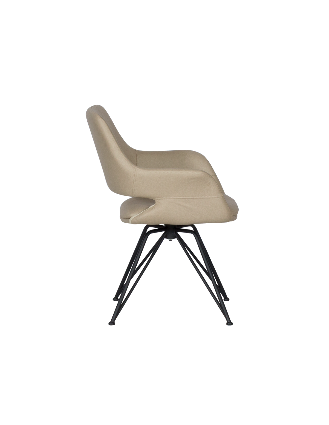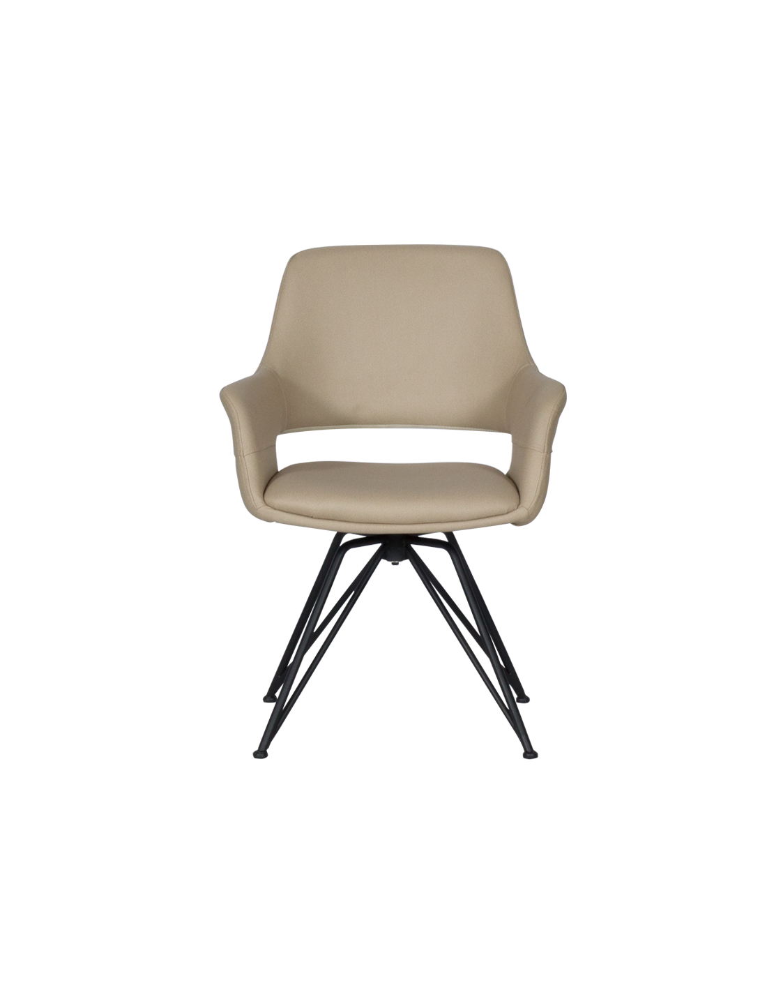 TOTNES трапезен стол с модерен дизайн, нестандартни крака и функция за въртене на седалката на 360°. Изработен е от висококачествена дамаска и прахово боядисан метал. Пълна информация за размерите и характеристиките на модела ще намерите в таблицата в таб/поле "Техническа информация".