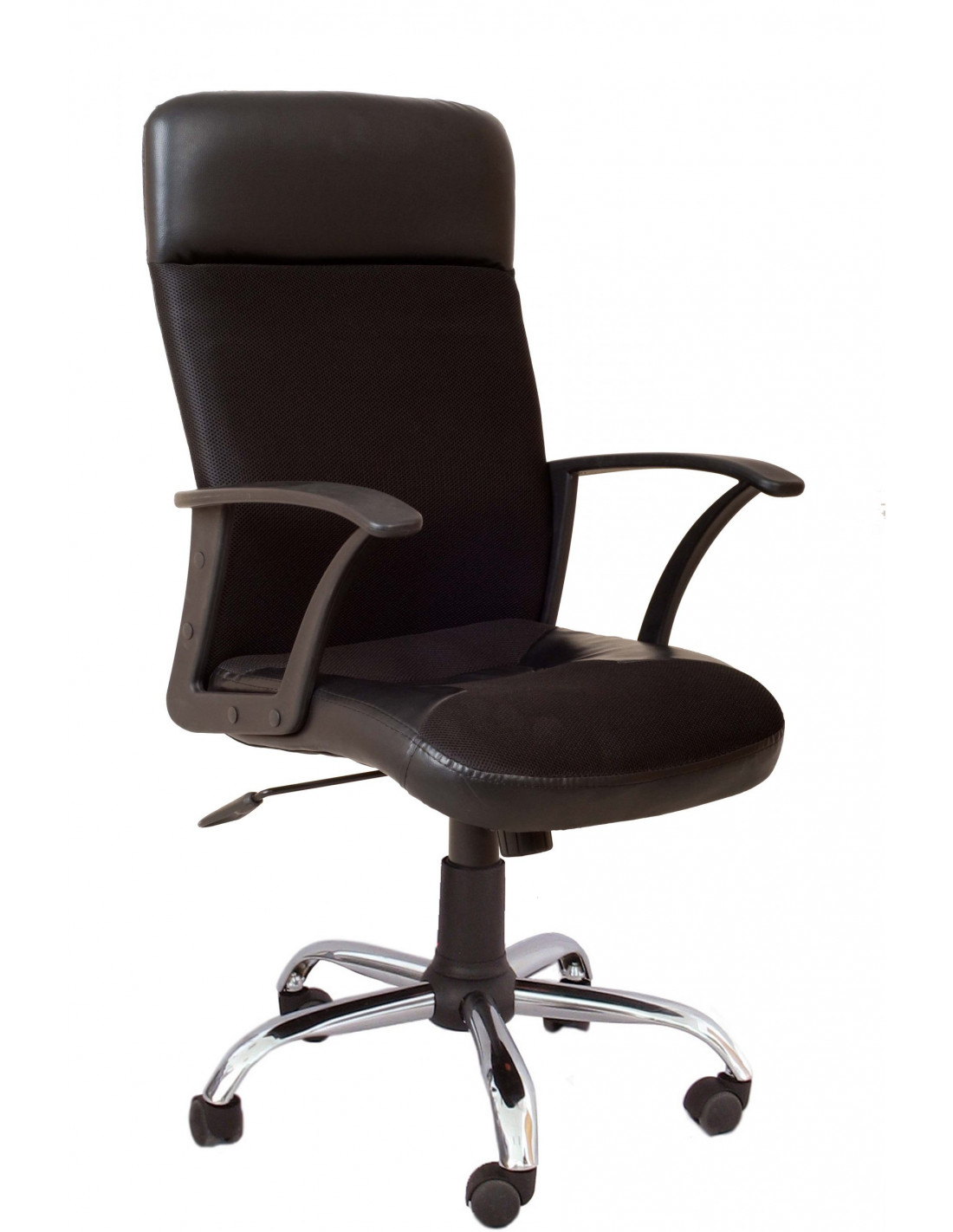 Седалка и облегалка, тапицирани в комбинация от мрежа и еко кожа – черен цвят.