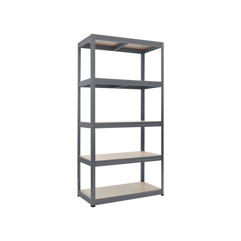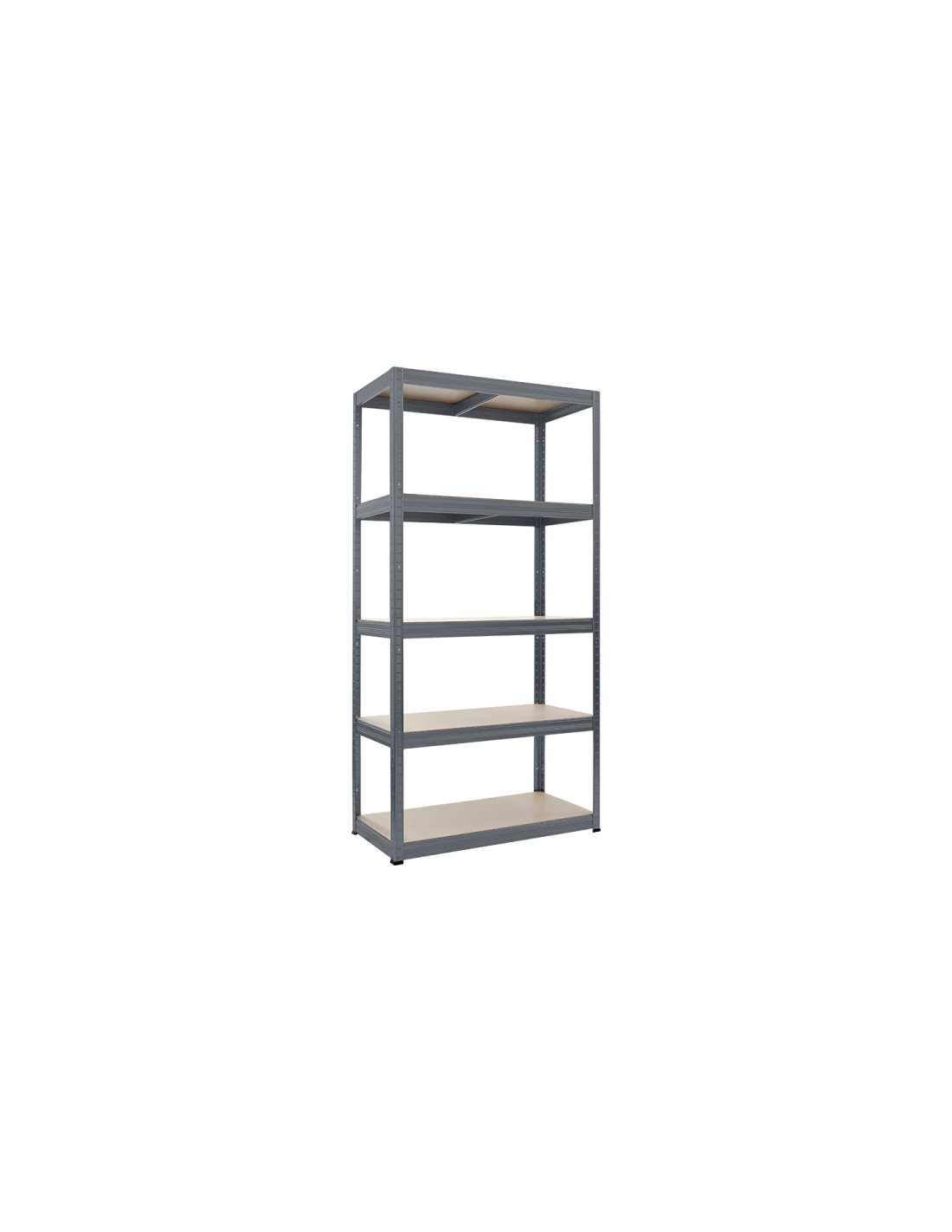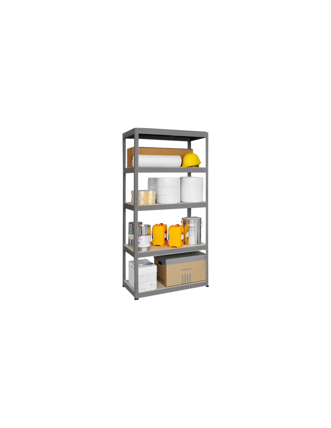 STAR 175 е универсален метален стелаж с безболтов монтаж. Той има 5 рафта с регулируема височина, изработени от МДФ. Всеки от тях има допълнителен укрепващ елемент и може да носи тежест до 175 кг.