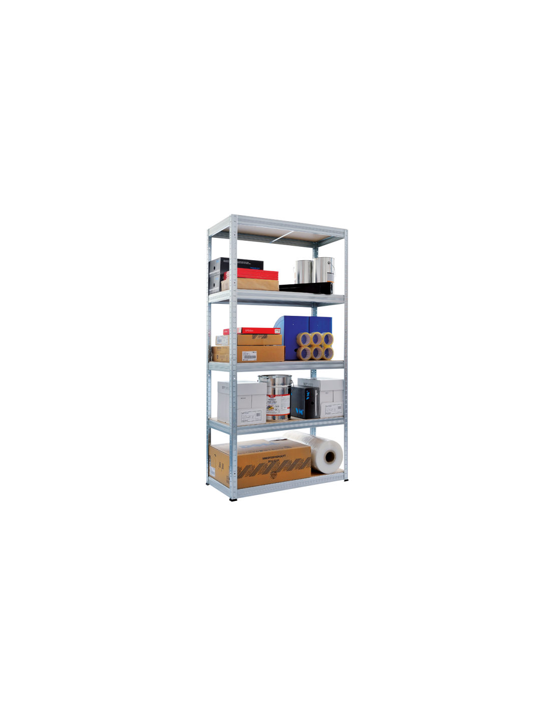 Металният стелаж HARD 90 разполага с 5 рафта, всеки от които може да издържи товар до 90 кг. Тяхната височина и позиция може да бъде регулирана. Стелажът се сглобява изключително лесно чрез безболтова система за монтаж. Цялата конструкция и рафтовете са изработени от галванизиран метал с покритие от еко боя.
