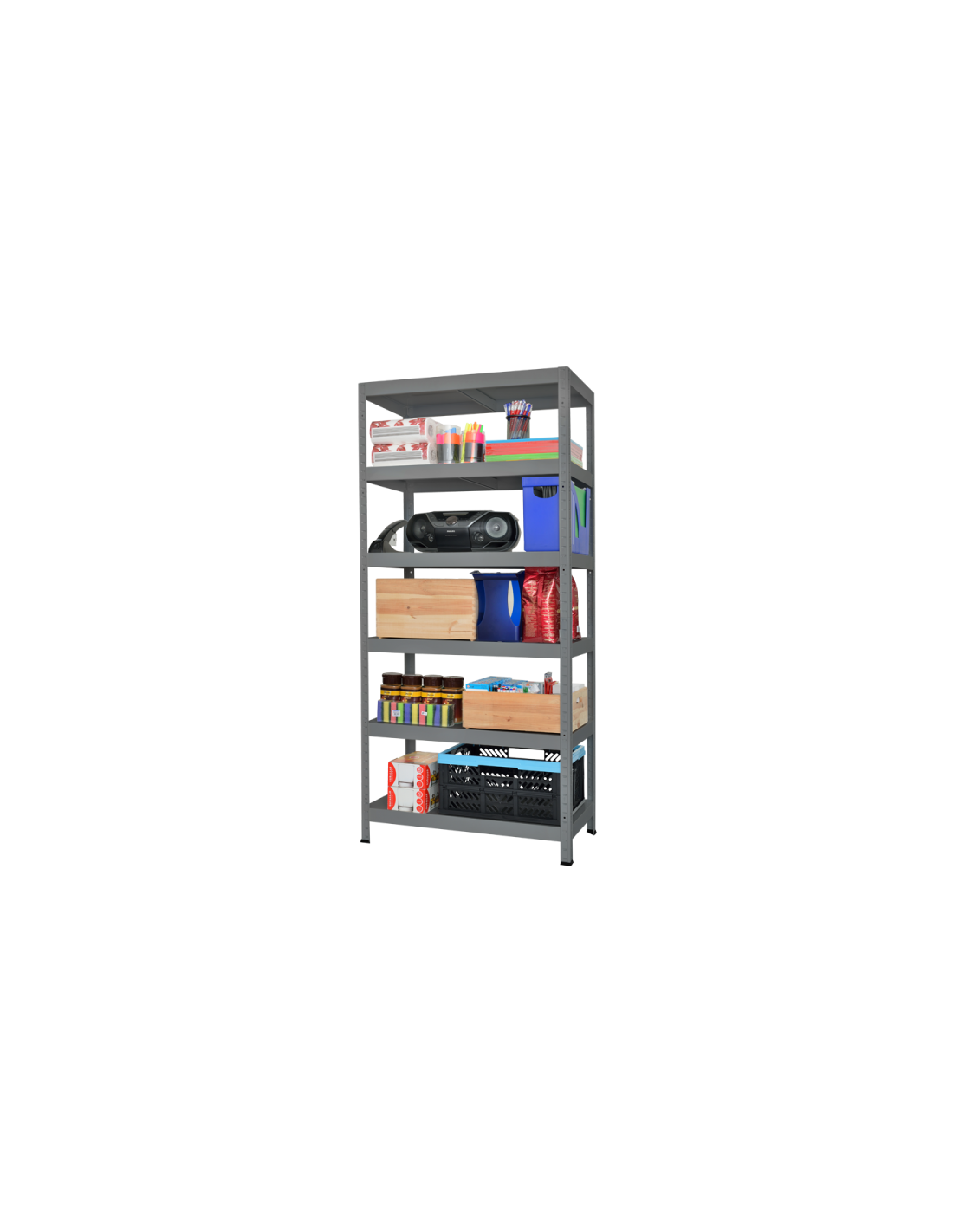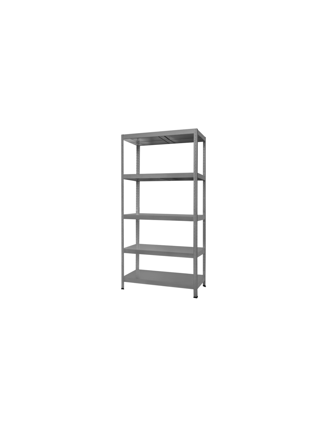 Металният стелаж HARD с размери 180x100x40 см разполага с 5 регулируеми по височина рафта, всеки от които може да понесе натоварване до 130 кг. Стелажът е с широко приложение за работното място или у дома и с лесен безболтов монтаж. Направен е от прахово боядисан метал без съдържание на вредни вещества за околната среда.