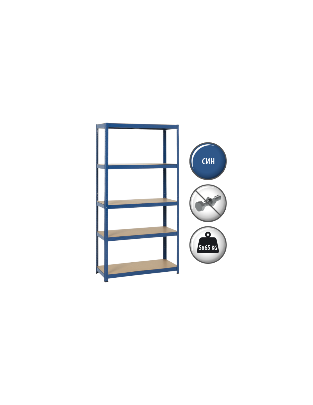 Метален стелаж Carmen CR-1027, 192x100x40 см, до 65 кг на рафт - син 17403