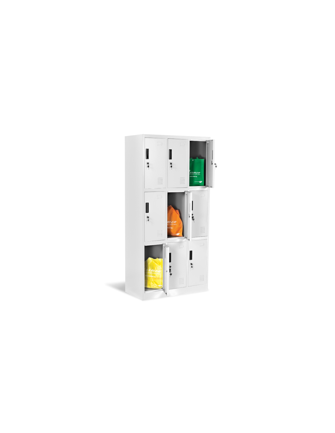 Металеният шкаф CR-1258 J е функционален гардероб с дванадесет на брой отделения с метални вратички и самостоятелни заключващи механизми. Подходящ е за съхранение на лични вещи, документи и багаж с компактни размери. Моделът е част от колекцията мебели от метал на Carmen, която включва метални контейнери, метални шкафове за документи, кардекс, метални...
