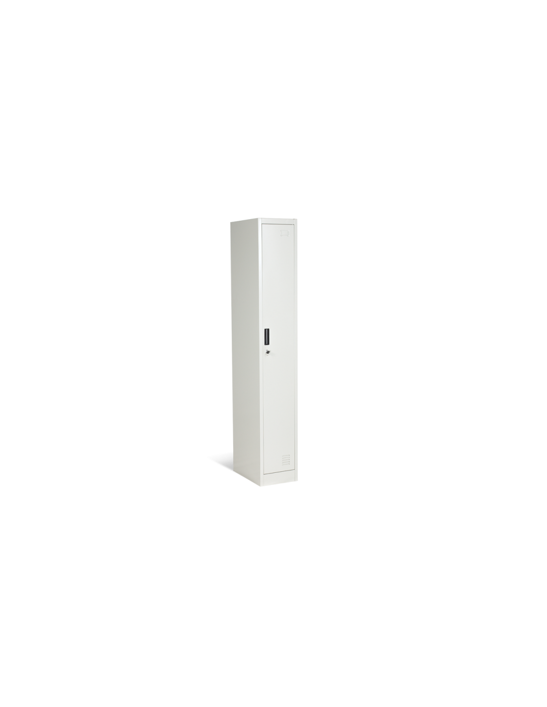 Метален шкаф Carmen CR-1242-1 ЕL е предназначен за съблекални в спортни зали, аеробик студиа или фитнес центрове. Всеки метален шкаф се заключва с уникален ключ, а за да сте сигурни, че това е вашето шкафче, можете да поставите етикет в специално предназначеното за целта място горе вдясно. Всяко шкафче е снабдено с отделение за обувките долу ниско и с метален лост за закачалки. Благодарение на практичните и удобни шкафове от серия Carmen дрехите ви ще запазят безупречния си вид. Специалното отворче за вентилация в долната част на вратата ще се погрижи за свежестта и чистотата на шкафчето.