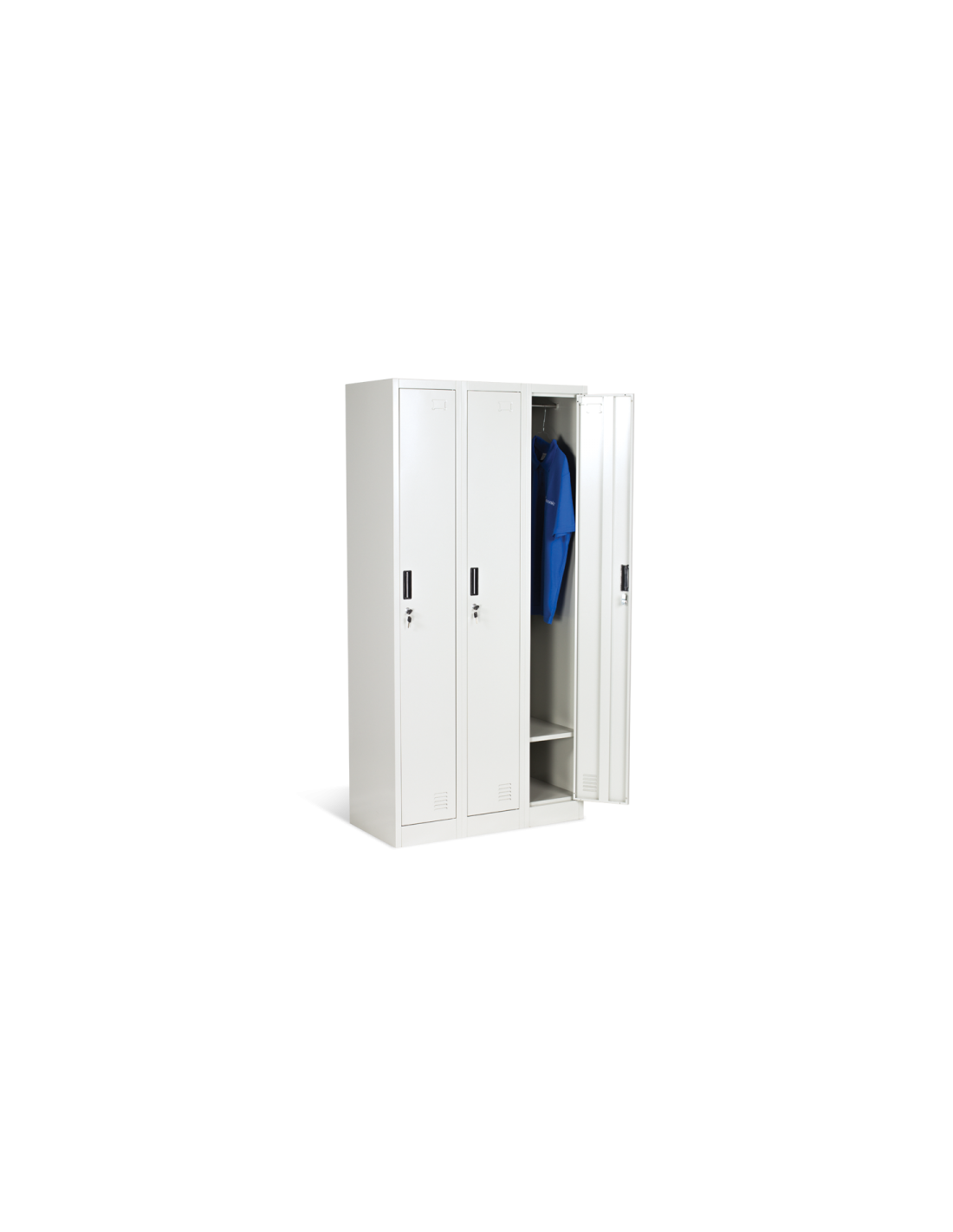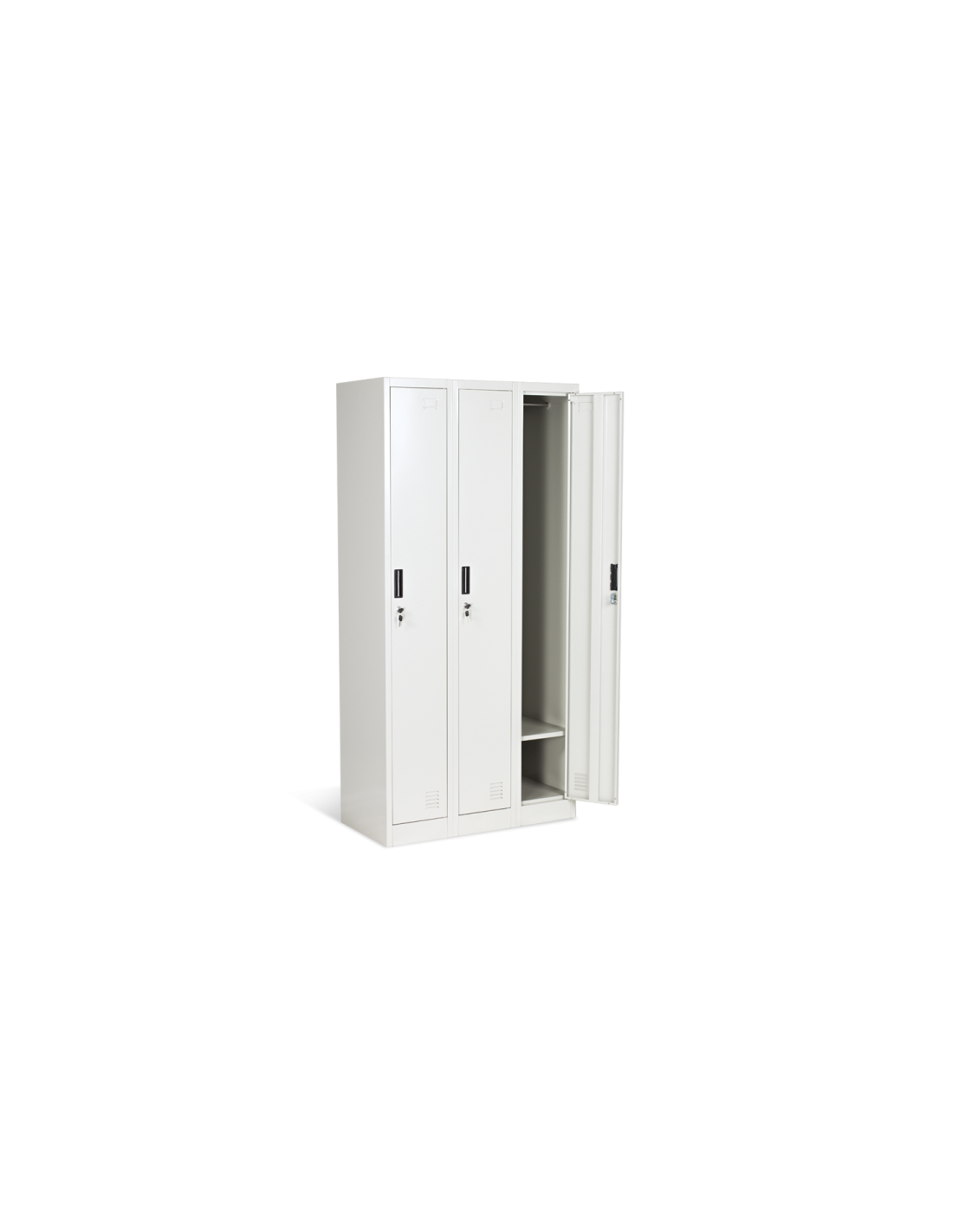Метален шкаф за съблекалня CR-1243 J от серията метални шкафове на Carmen разполага с шест метални врати, шест рафта и възможност за заключване. Системата от метални мебели на Carmen включва офис контейнери, метални гардероби за съблекалня, метални контейнери, метални шкафове за документи, кардекс и други.
