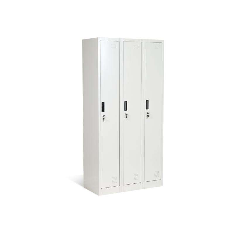 Металният шкаф Carmen CR-1242 K разполага с три метални врати, три рафта и възможност за заключване. На всяка врата има вентилационен отвор и място за поставяне на етикет. Системата от метални мебели на Carmen включва офис контейнери, метални гардероби за съблекалня, метални контейнери, метални шкафове за документи, кардекс и други.