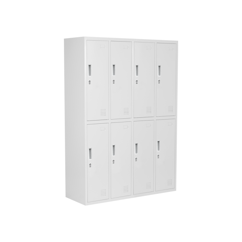 Металният шкаф Carmen CR-1276 K се състои от 8 отделения за съхранение на багаж. Моделът е изработен от праховобоядисан метал с гладко покритие. На вратите има вентилационен отвор и място за поставяне на етикет. Шкафчетата се затварят посредством заключващ механизъм с помощта на катинар. Катинарите не са включени в цената.