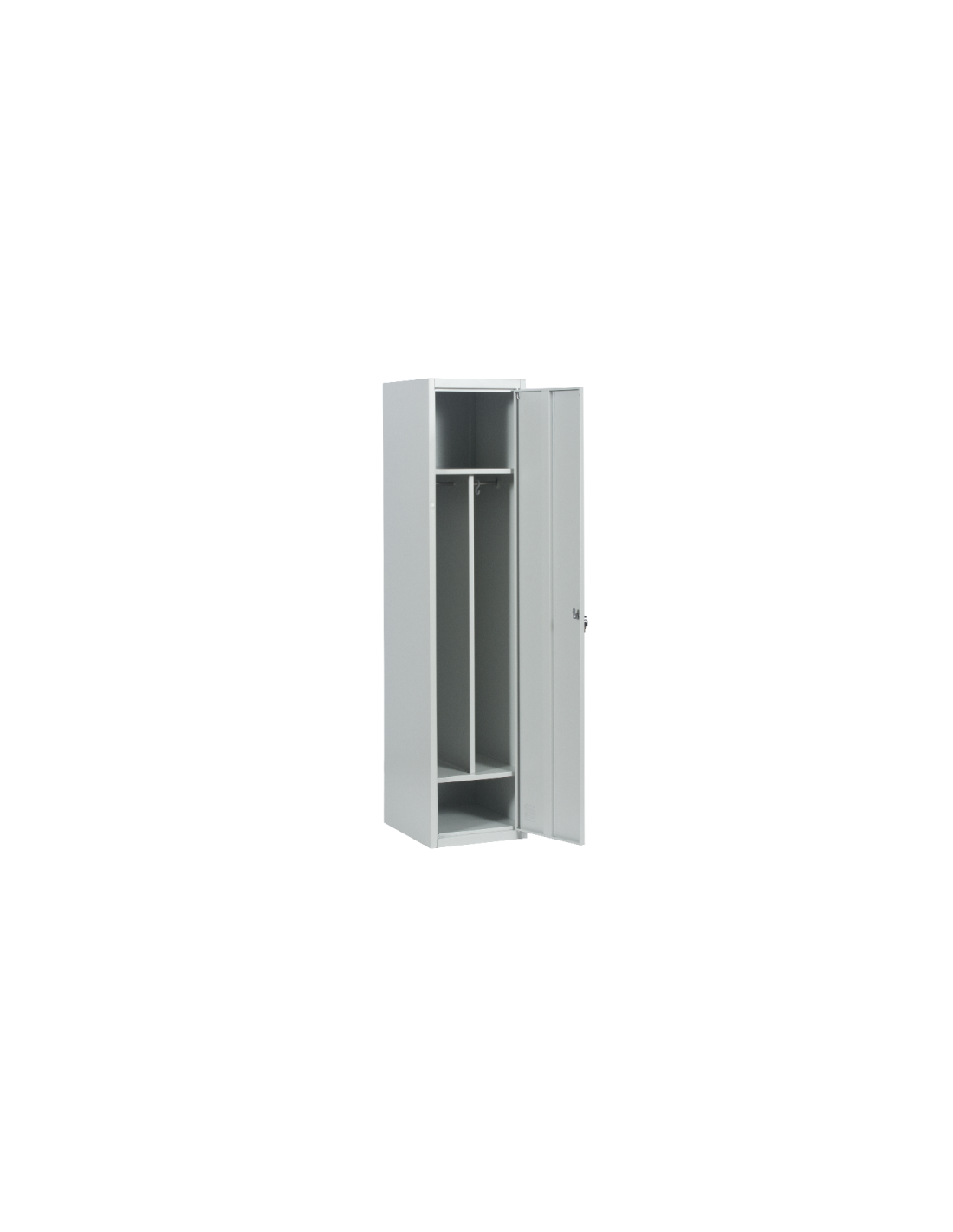 Carmen CR-1291 K е метален шкаф, изработен от праховобоядисан метал. Единичният гардероб разполага с 2 рафта, като всеки от тях издържа на максимално натоварване до 40 кг. Възможността за заключване гарантира, че вещите ви ще бъдат на сигурно място.