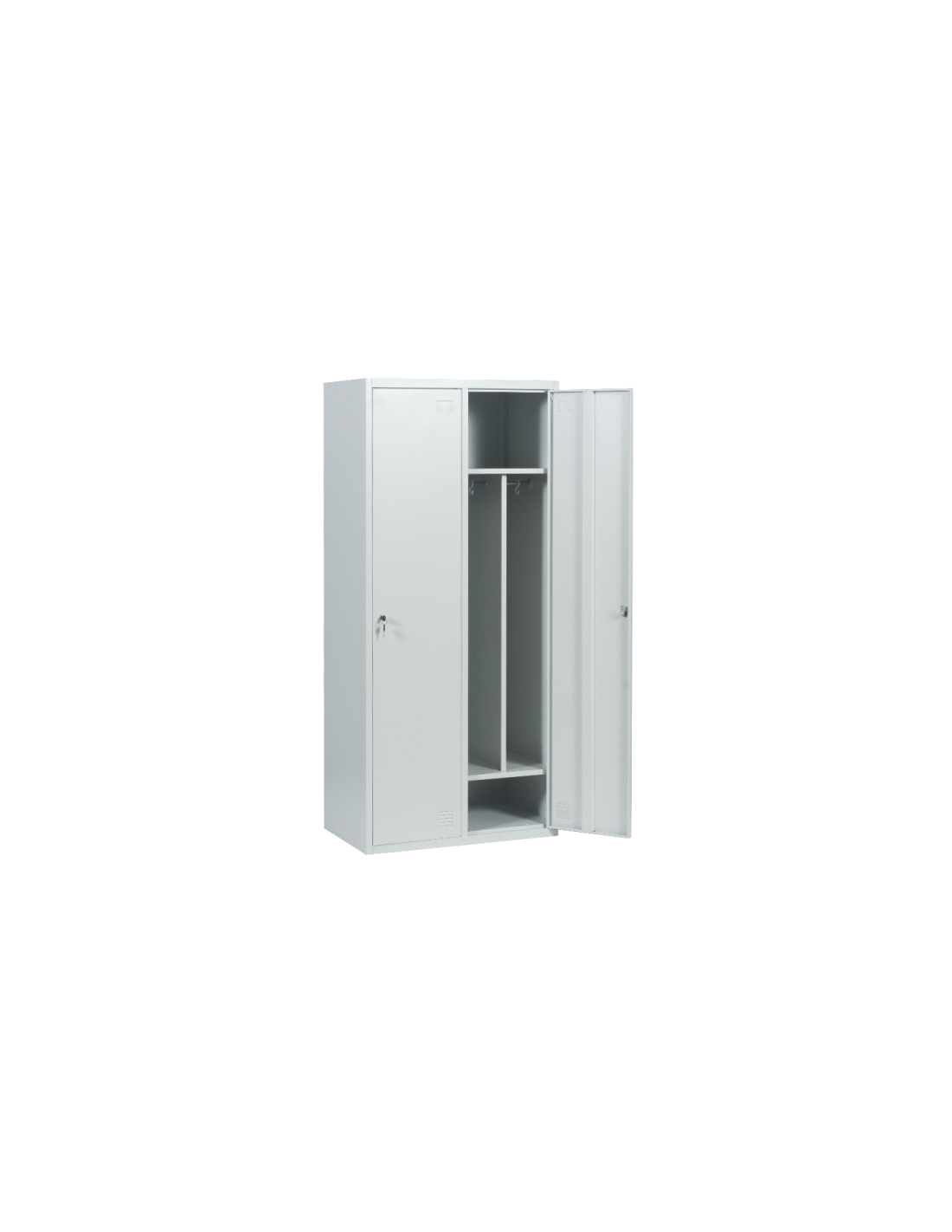 Метален шкаф Carmen CR-1292 K е подходящ за съблекални. Моделът разполага с две метални врати и възможност за заключване. Има 4 рафта, всеки издържащ на максимално натоварване до 40 кг.