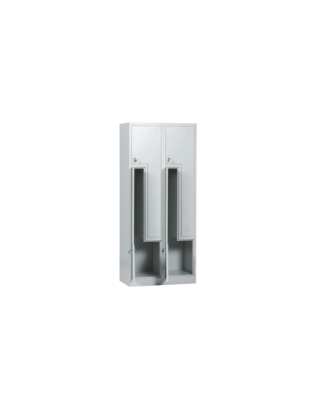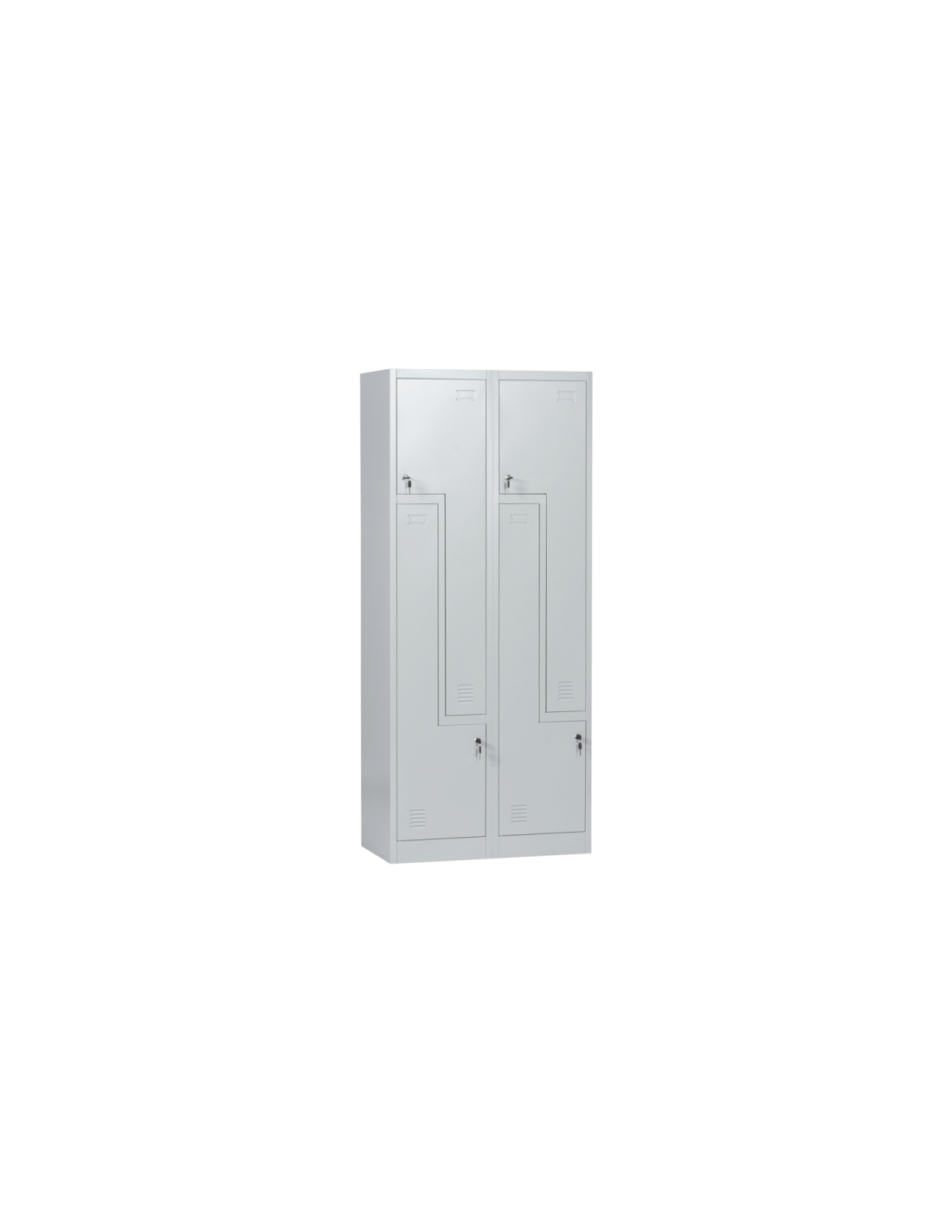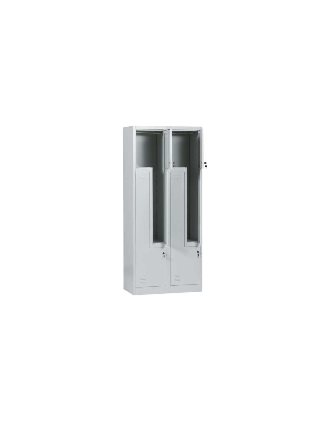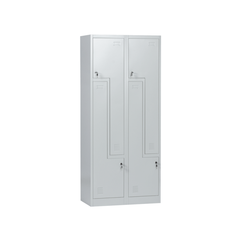 Металният шкаф Carmen CR-1280 К е гардероб с 4 отделения с нестандартна форма и заключващи врати. Всяко шкафче има лост за закачалки, вентилационен отвор и място за поставяне на етикет.
