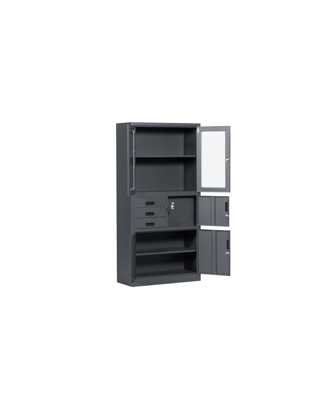 Метален шкаф CR-1262 J от серията метални шкафове на Carmen разполага с две ролетни врати и рафтове с регулируема височина. Системата от метални мебели на Carmen включва офис контейнери, метални гардероби за съблекалня, метални контейнери, метални шкафове за документи, кардекс и други.