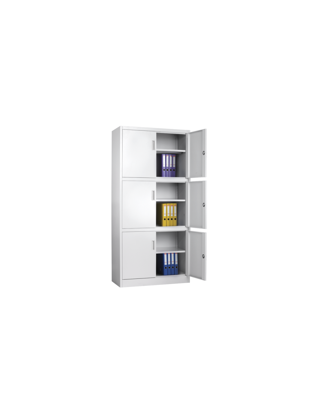Метален шкаф CR-1236 L от серията метални шкафове на Carmen разполага с две метални врати и рафтове с регулируема височина. Системата от метални мебели на Carmen включва офис контейнери, метални гардероби за съблекалня, метални контейнери, метални шкафове за документи, кардекс и други.