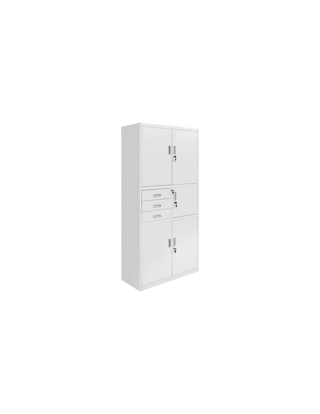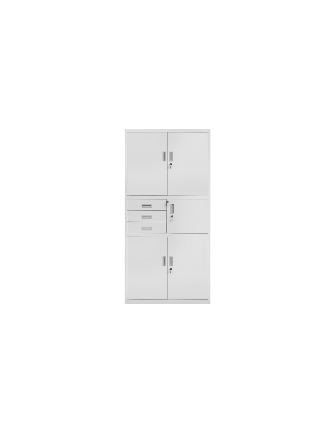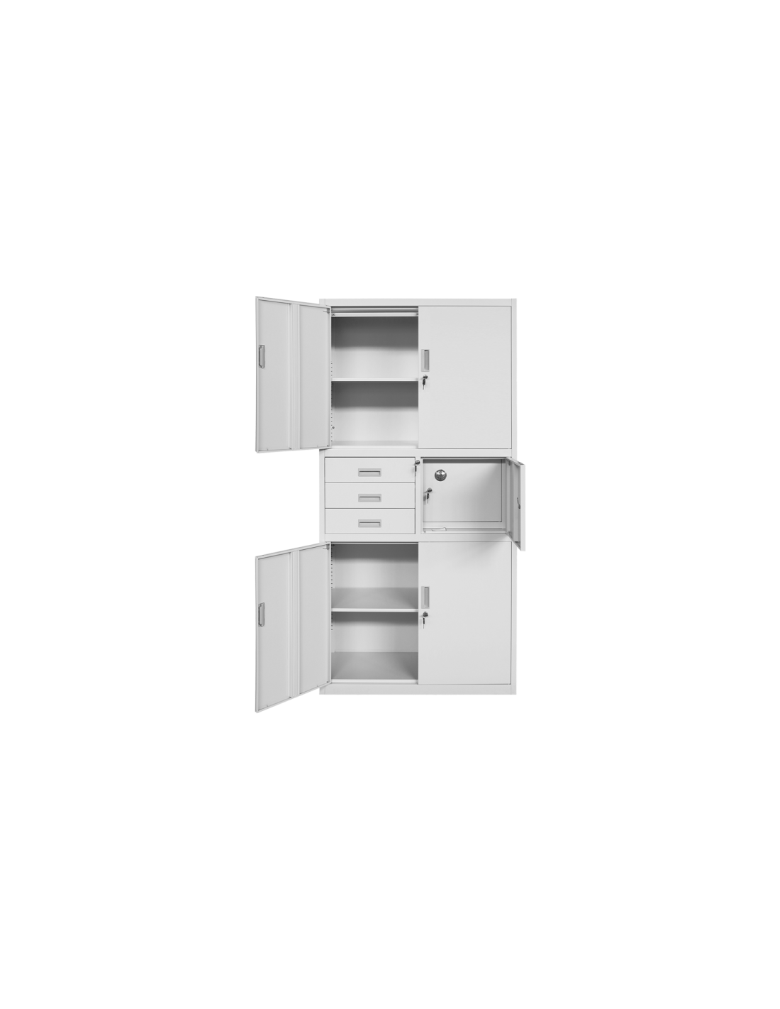 Метален шкаф CR-1235 GR от серията метални шкафове на Carmen е удобна офис мебел за съхранение на важна документация. Моделът разполага с четири регулируеми рафта и надежден триточков механизъм за заключване. Колекцията мебели от метал на Carmen включва метални шкафове, метални гардероби, офис контейнери, шкафове за документация, кардекс и други.