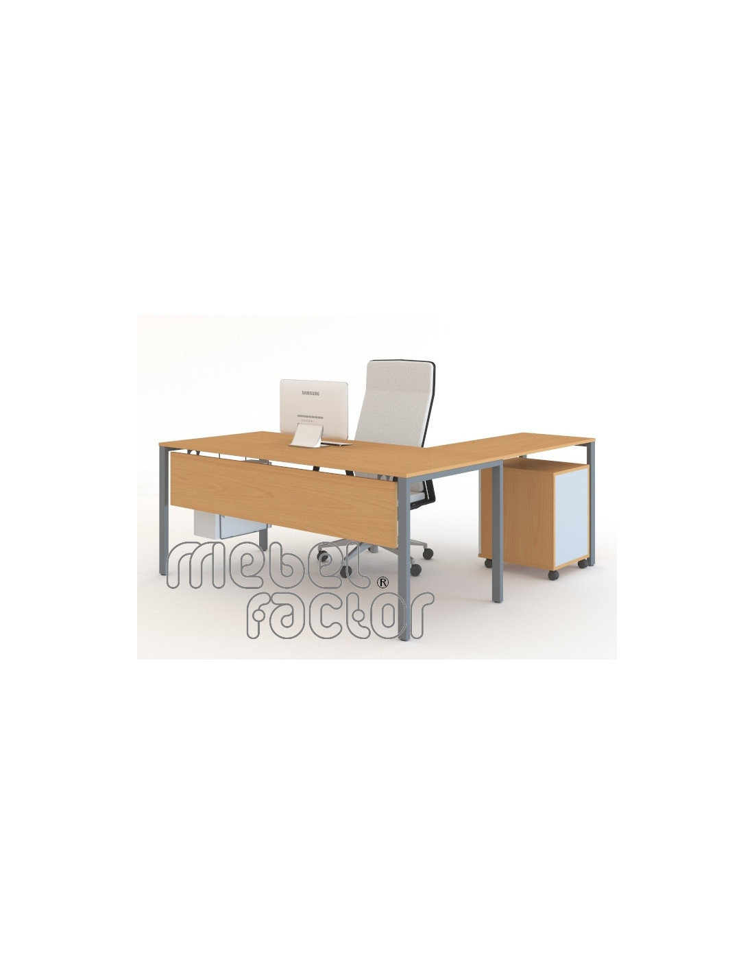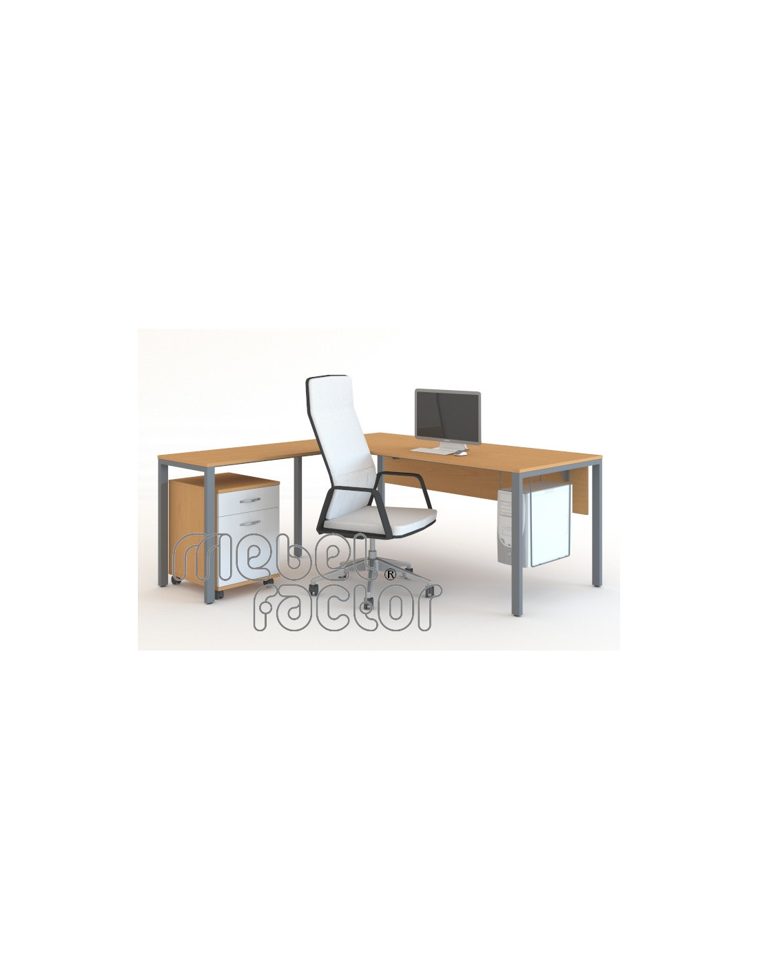 Плотове 18мм ламинирано ПДЧ с кант 2мм. Декори на ЛПДЧ от фирмения картел. Конструкция от правоъгълен профил 50х30мм. Нивелирани винтови стъпки. Полимерно прахово покритие в цветове на RAL. Тази композиция съдържа: 130 207181 Бюро КЛАСИК 180х70см с лицев панел. 130 215100 Помощно бюро КЛАСИК 100х50см. 131 112632 Подвижен офис контейнер с шкаф и чекмедже. 131 290050 Висящ носач за компютър.