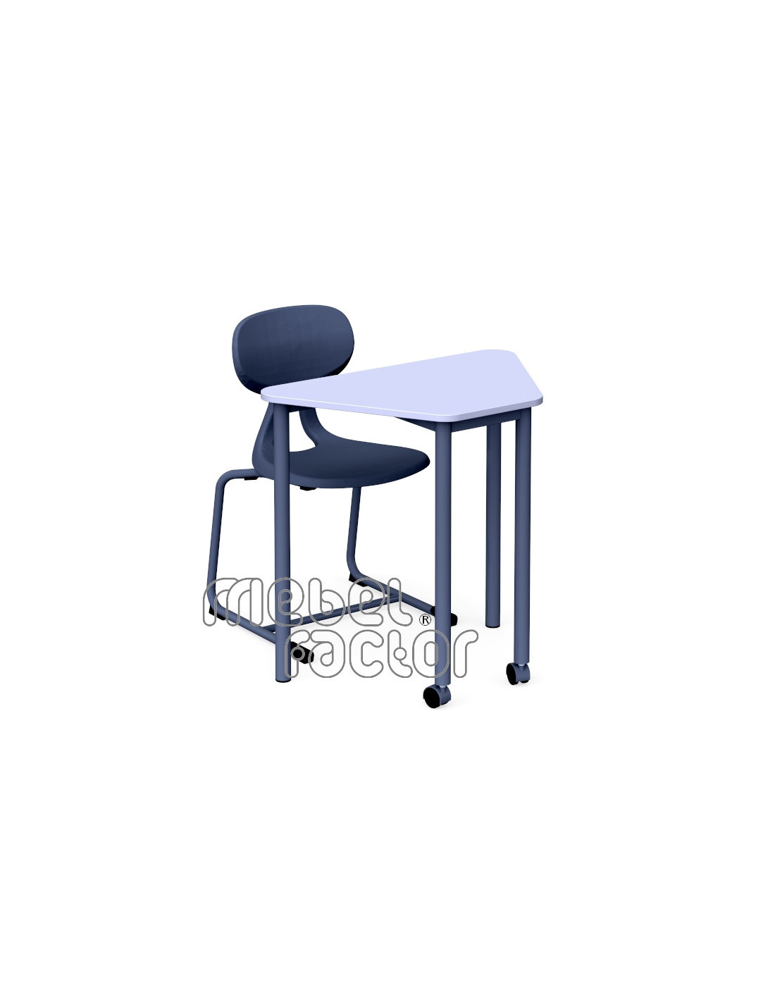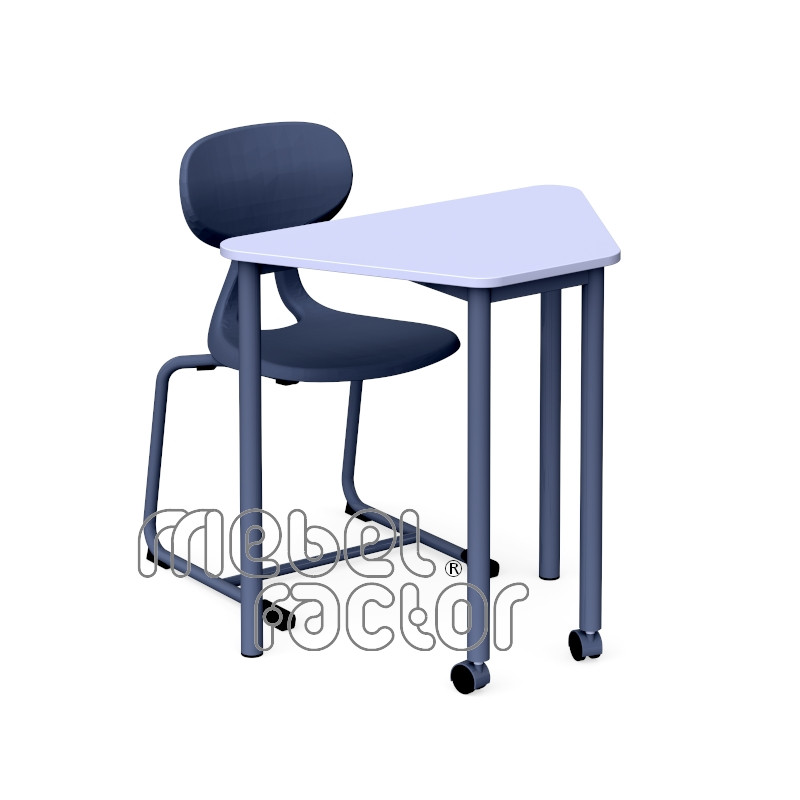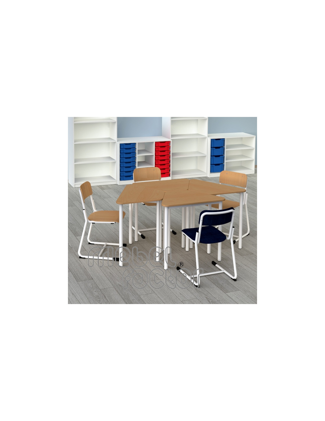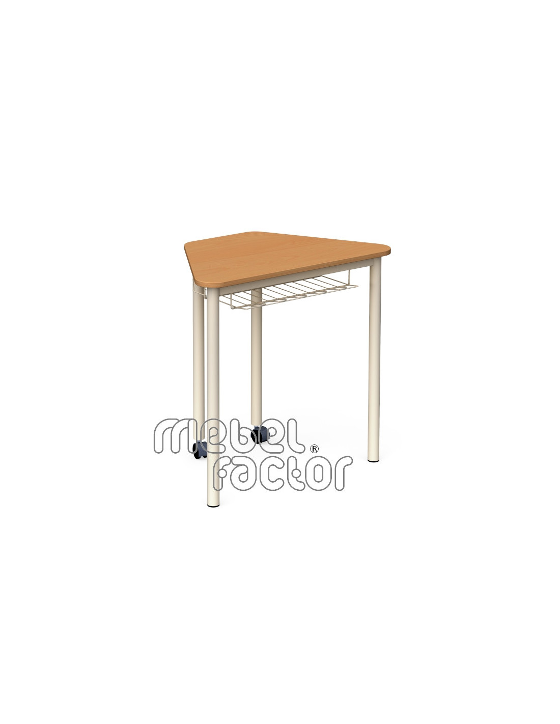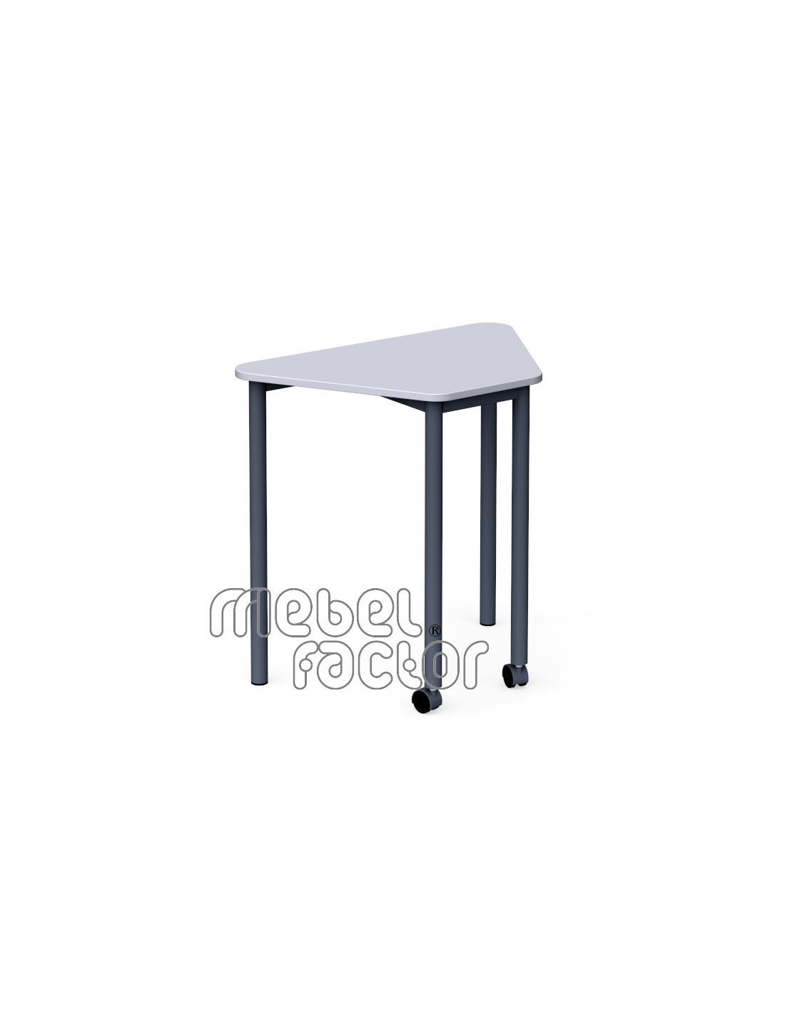Подвижна, модулна маса ТРАПЕЦ-М, размер 6. Удобна за самостоятелна и групова работа. Творческо решение за динамична учебна среда. Придвижване на две колела с фиксиращ механизъм. Трапецовидната форма на плота позволява комбиниране в групи от 3, 4, 6 маси или в редица. Подходяща за възраст над 14 години. Плот с размери 79Х50/Н76см., кант 2,0мм. Декори на ламинирано ПДЧ от фирмения картел. Заварена конструкция с крака от тръба 40мм. Царги от правоъгълен профил 40х20мм. Полимерно, прахово покритие в цветове по RAL. Произведено в България. Продуктът отговаря на стандарт БДС EN 1729 - "Мебели. Столове и маси за учебни заведения."