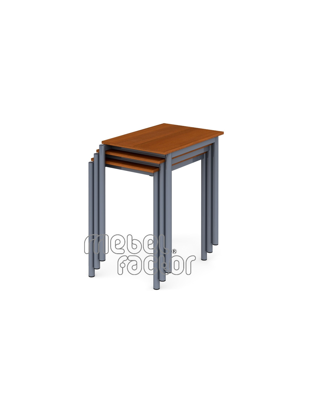 Едноместна, конферентна маса РОНДО СТИФ, размер 6. Удобна за самостоятелна и групова работа. Подходяща за учебни и конферентни зали. Стифиране до 4 броя. Подходяща за възраст над 14 години. Плот с размери 70х50/Н76см., кант 2,0мм. Декори на ламинирано ПДЧ от фирмения картел. Заварена конструкция с крака от тръба 40мм. Царги от правоъгълен профил 40х20мм. Полимерно, прахово покритие в цветове по RAL. Произведено в България. Продуктът отговаря на стандарт БДС EN 1729 - "Мебели. Столове и маси за учебни заведения."