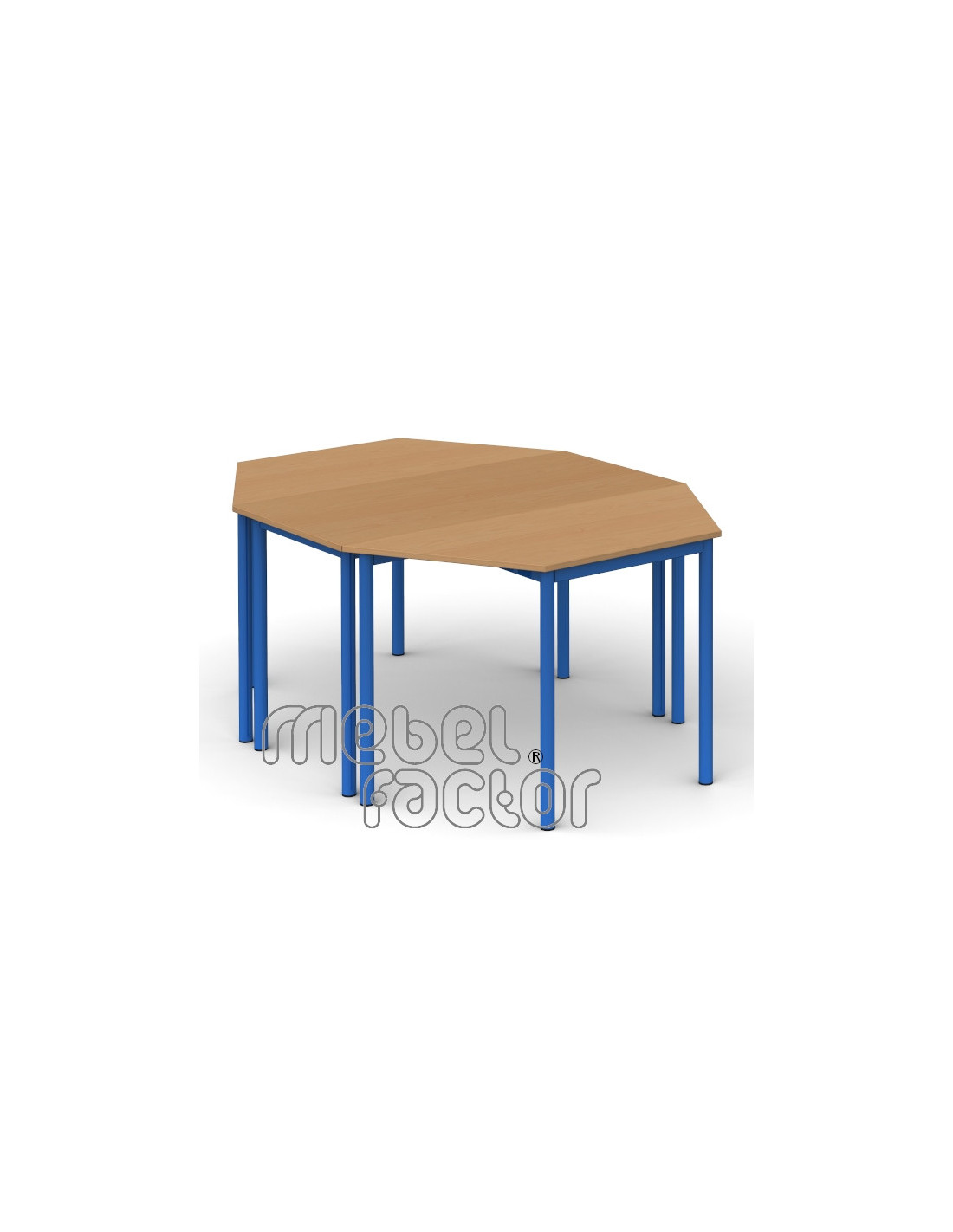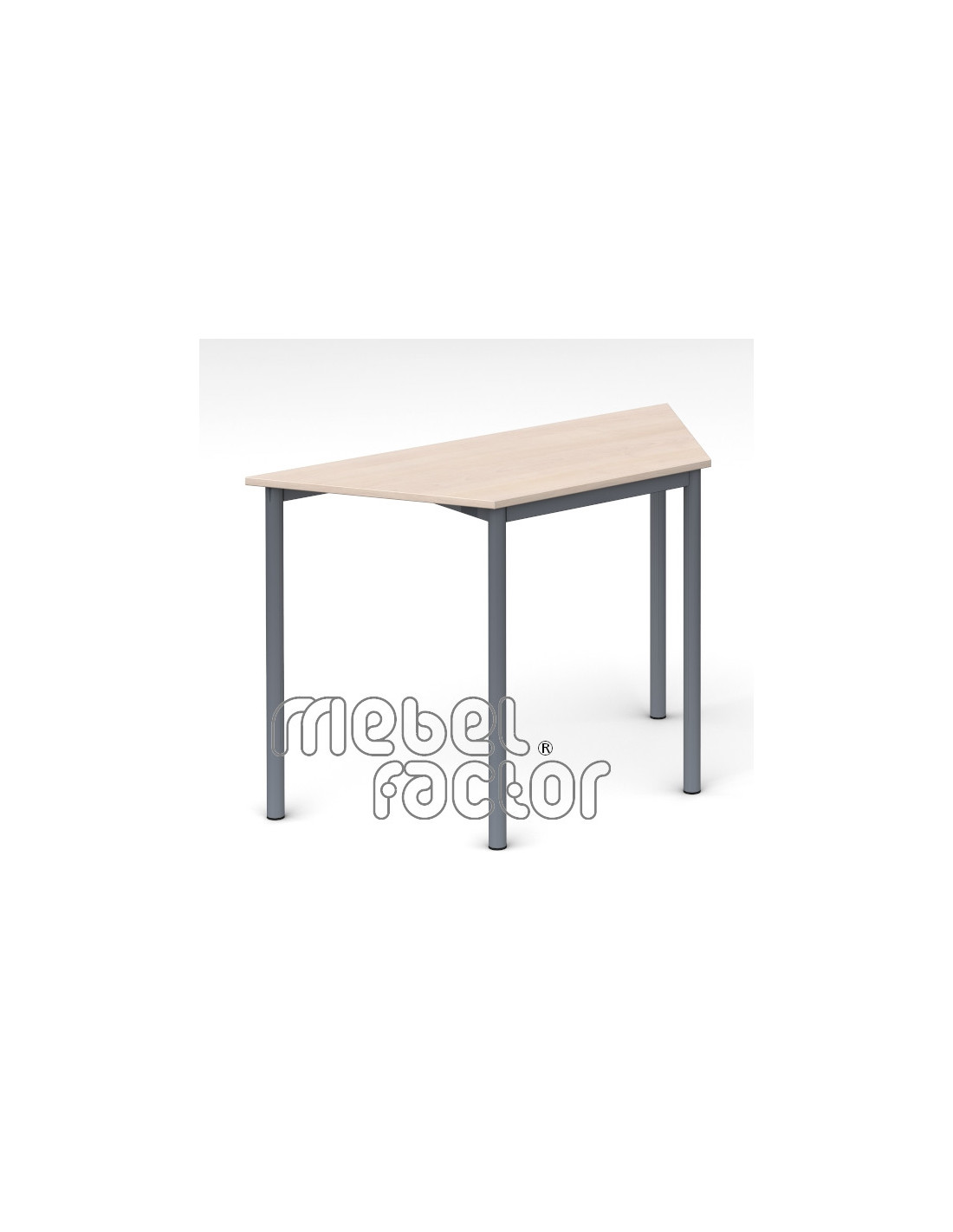 Ученическа модулна маса РОНДО, размер 6. Подходяща за възраст над 14 години. Трапецовиден плот с размери 120х52см./Н76см, кант 2,0мм. Дължина на горната основа и бедрата на трапеца - 60см. Декори на ламинирано ПДЧ от фирмения картел. Заварена конструкция с крака от тръба 40мм. Царги от правоъгълен профил 40х20мм. Полимерно, прахово покритие в цветове по RAL. Произведено в България. Продуктът отговаря на стандарт БДС EN 1729 - "Мебели. Столове и маси за учебни заведения."
