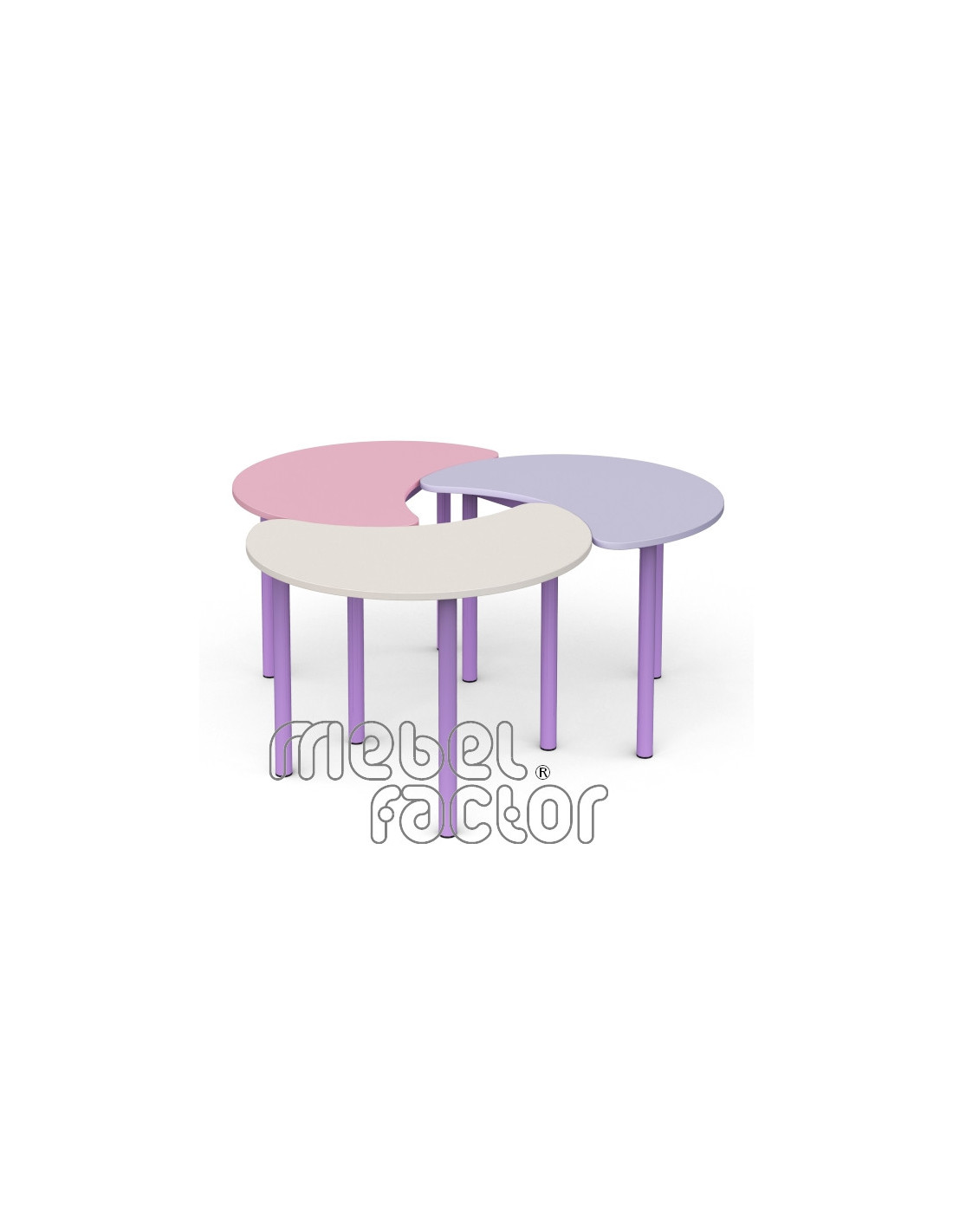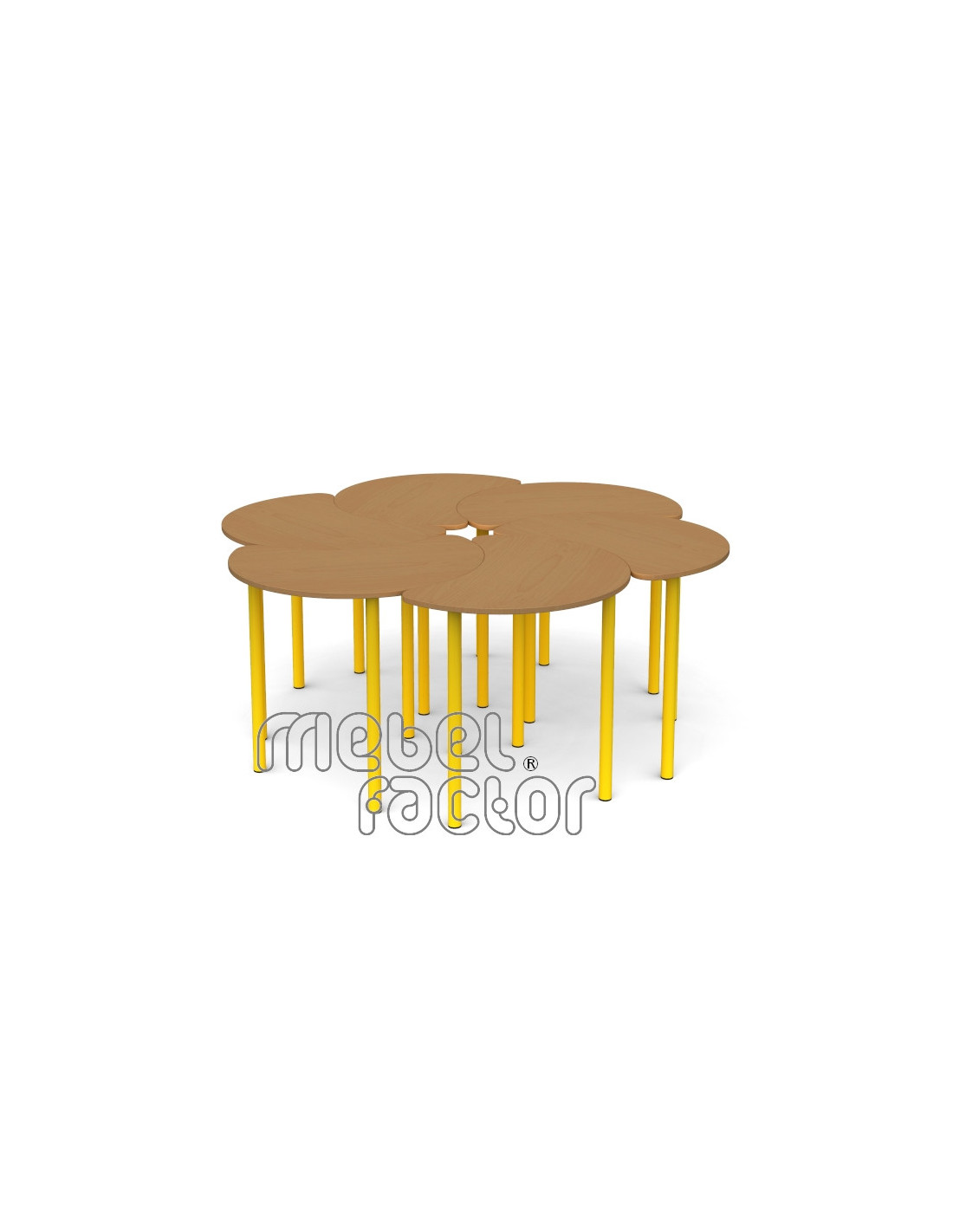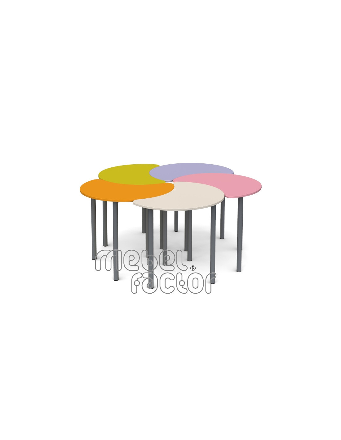 Ученическа, модулна маса МАРГАРИТА, размер 4. Удобна за самостоятелна и групова работа. Възможност за комбинации в кръг: - 3 бр. с диаметър 135см. - 4 бр. с диаметър 145см. - 5 бр. с диаметър 160см. - 6 бр. с диаметър 175см. Подходяща за възраст от 7 до 10 години. Плот с размери 80х60/Н65см., кант 2,0мм. Декори на ламинирано ПДЧ от фирмения картел. Заварена конструкция с крака от тръба 40мм. Царги от правоъгълен профил 40х20мм. Полимерно, прахово покритие в цветове по RAL. Произведено в България. Продуктът отговаря на стандарт БДС EN 1729 - "Мебели. Столове и маси за учебни заведения."