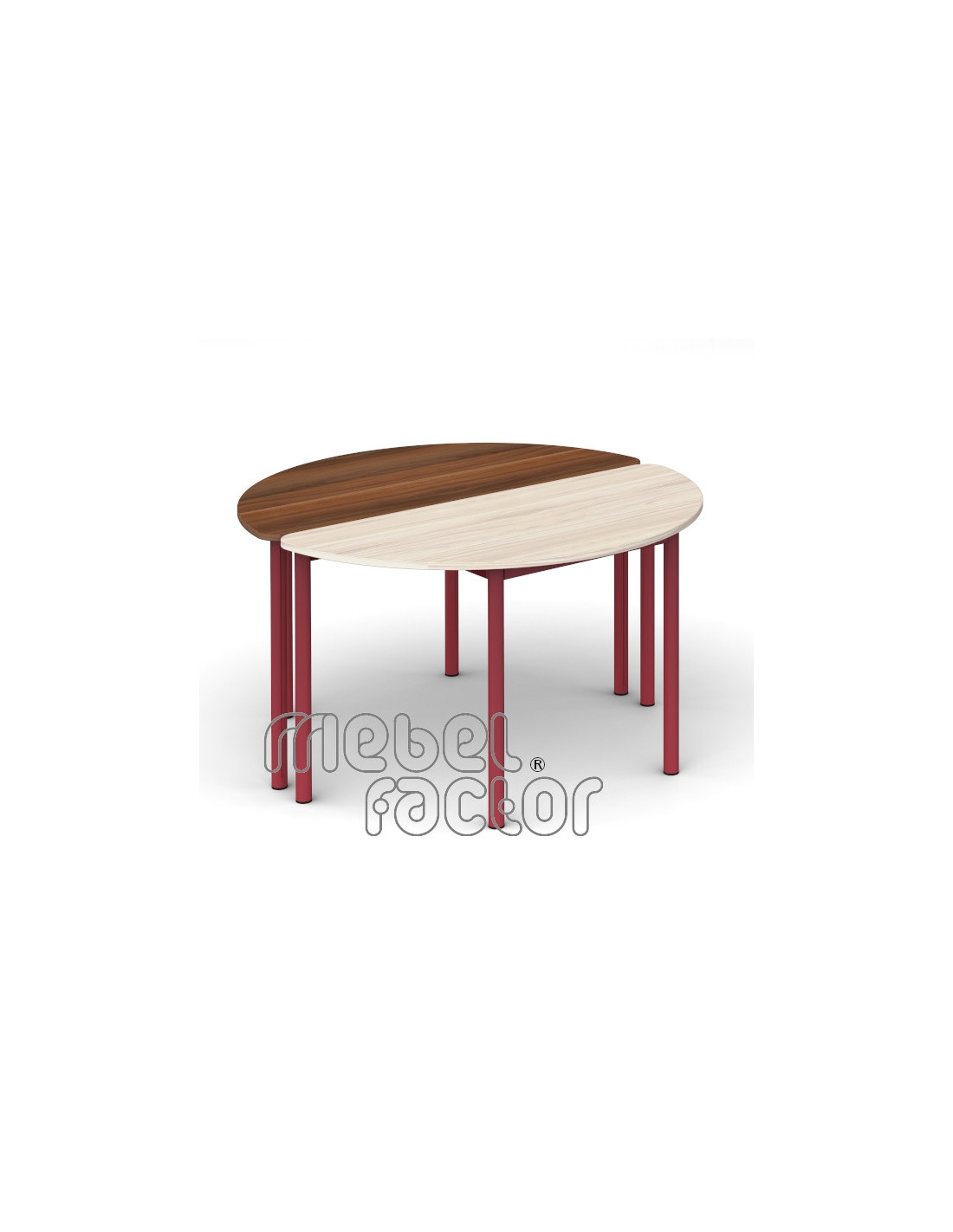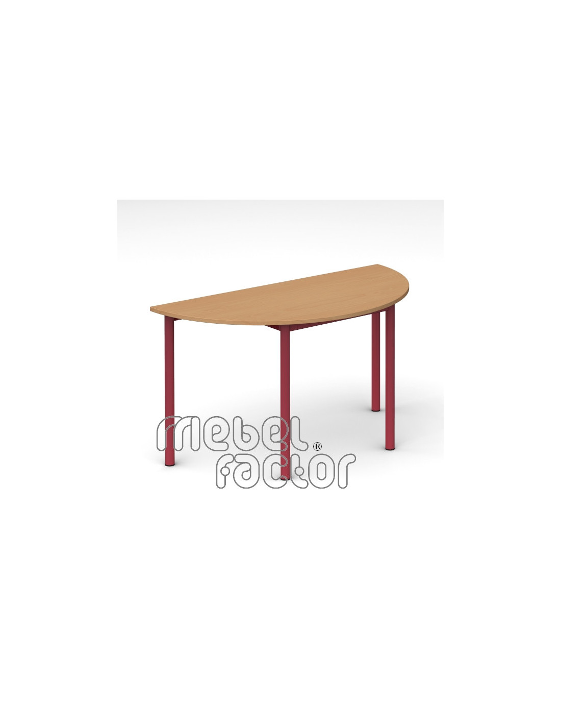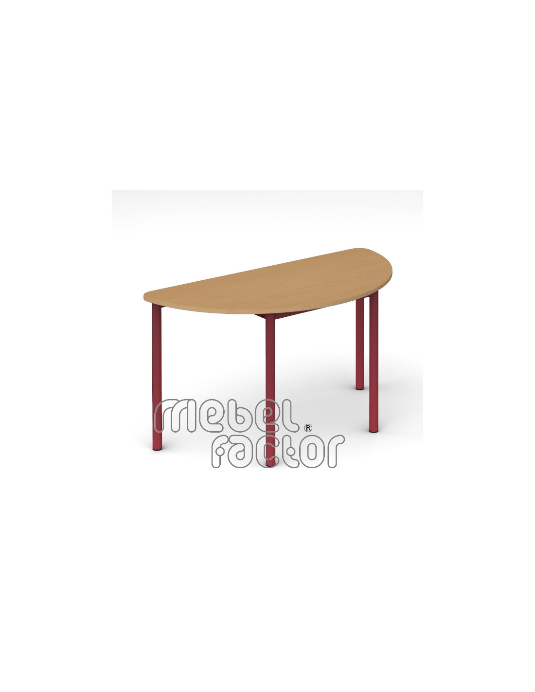 Ученическа модулна маса РОНДО, размер 4. Подходяща за възраст от 7 до 11 години. Плот полукръг с размери 120х60см./Н65см, кант 2,0мм. Варианти с обезопасени, заоблени ъгли на плота. Декори на ламинирано ПДЧ от фирмения картел. Заварена конструкция с крака от тръба 40мм. Царги от правоъгълен профил 40х20мм. Полимерно, прахово покритие в цветове по RAL. Произведено в България. Продуктът отговаря на стандарт БДС EN 1729 - "Мебели. Столове и маси за учебни заведения."