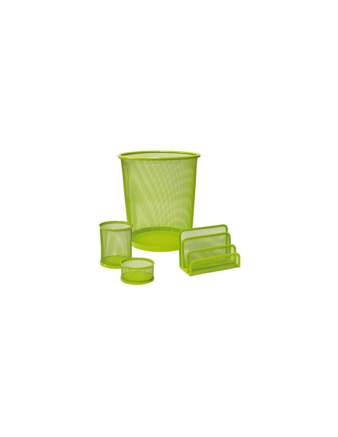Включва кошче за отпадъци с обем 9 литра, моливник, кламеродържател, поставка за листчета и визитни картички.