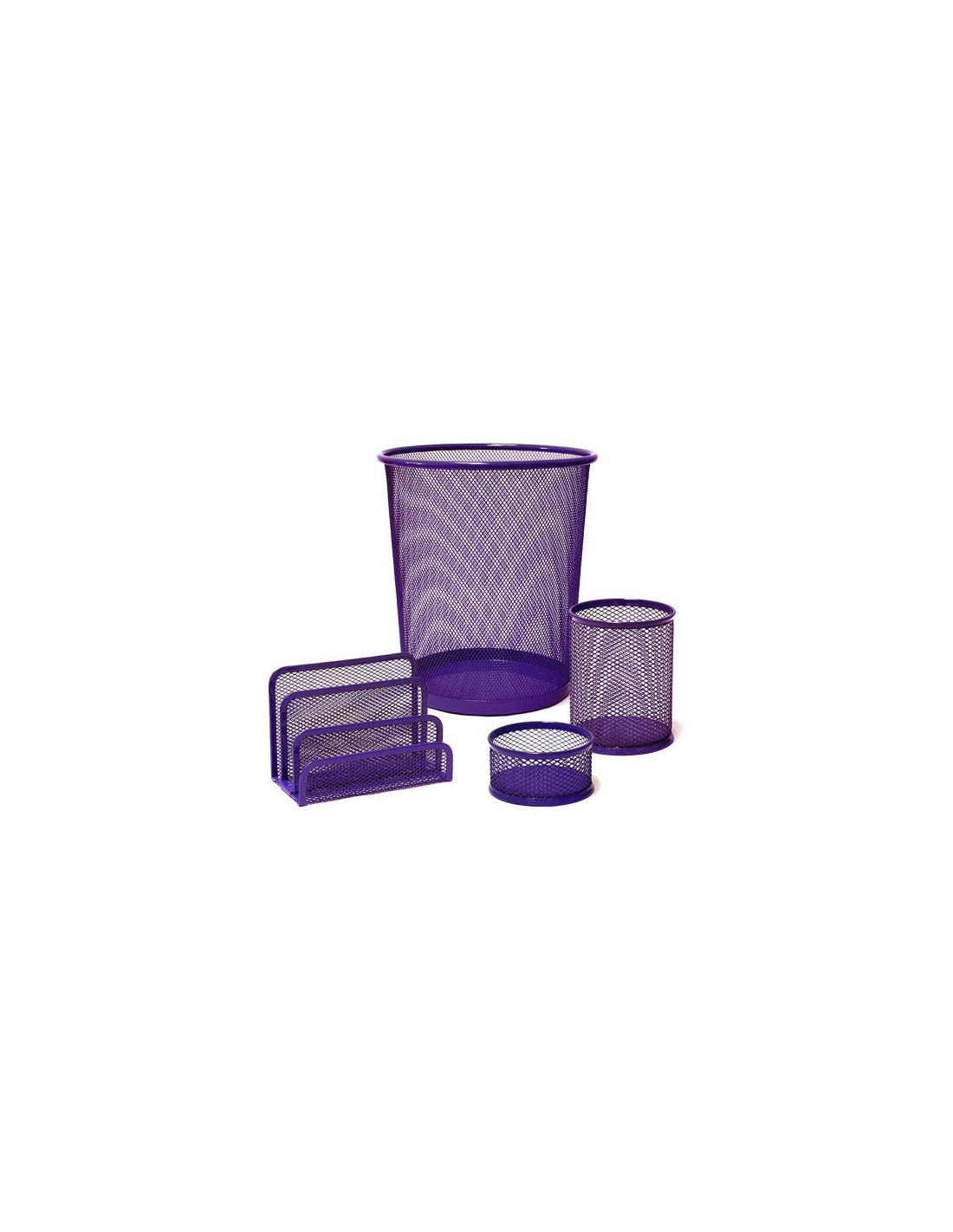 Включва кошче за отпадъци с обем 9 литра, моливник, кламеродържател, поставка за листчета и визитни картички.