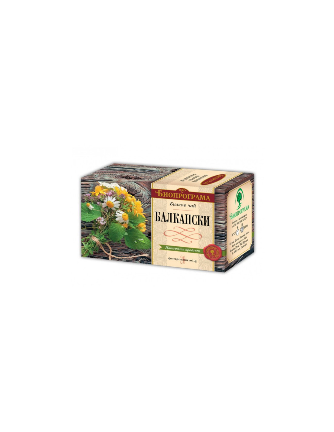Съставки: стрък риган, стрък мащерка, плод шипка, стрък жълт кантарион, цвят лайка