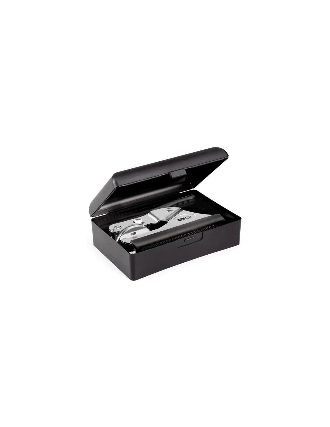 Дръжка от хромирана стомана и покрита с гума основа, на принципа на клещите.